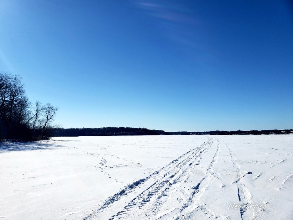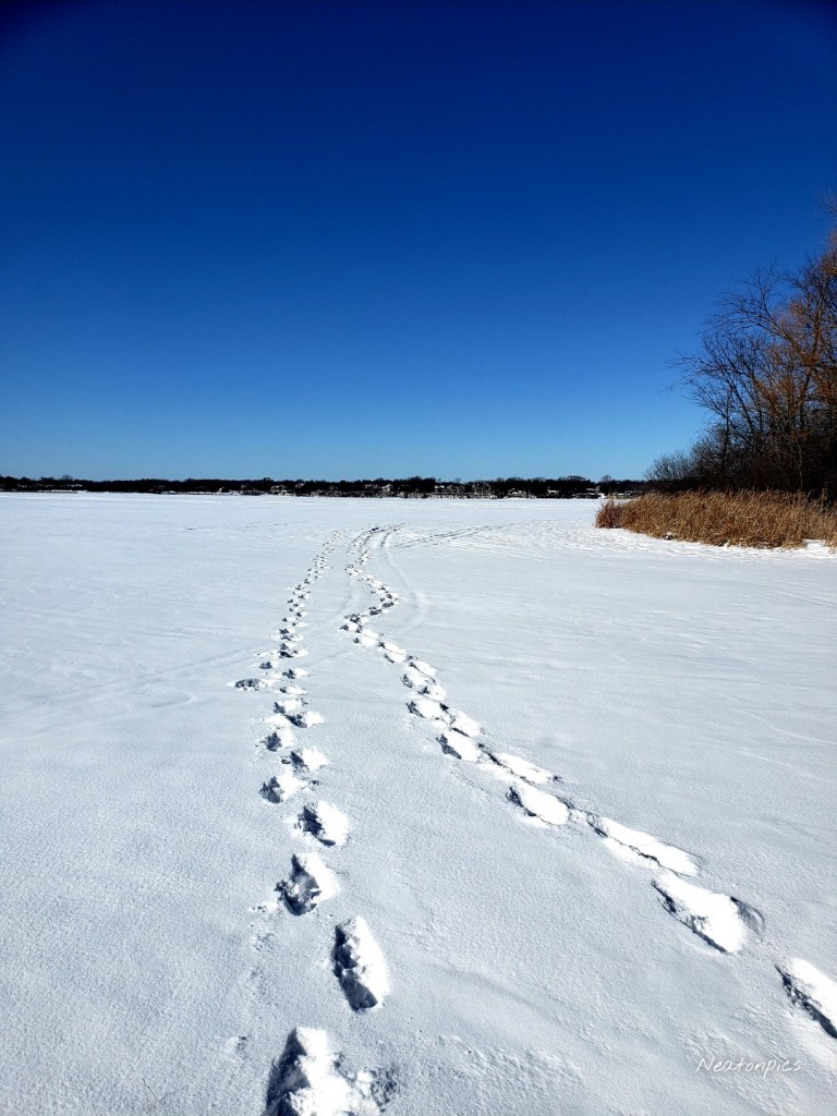 After a detour of the dog park, we found our way back to the park and onto the winter hiking trail. A quick walk on the frozen Lake Minnewashta offered views of ice fishing houses, ski trails and our fresh footsteps.