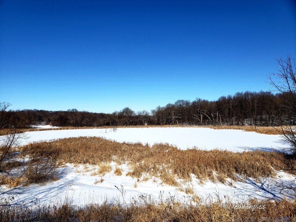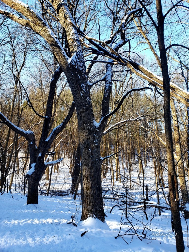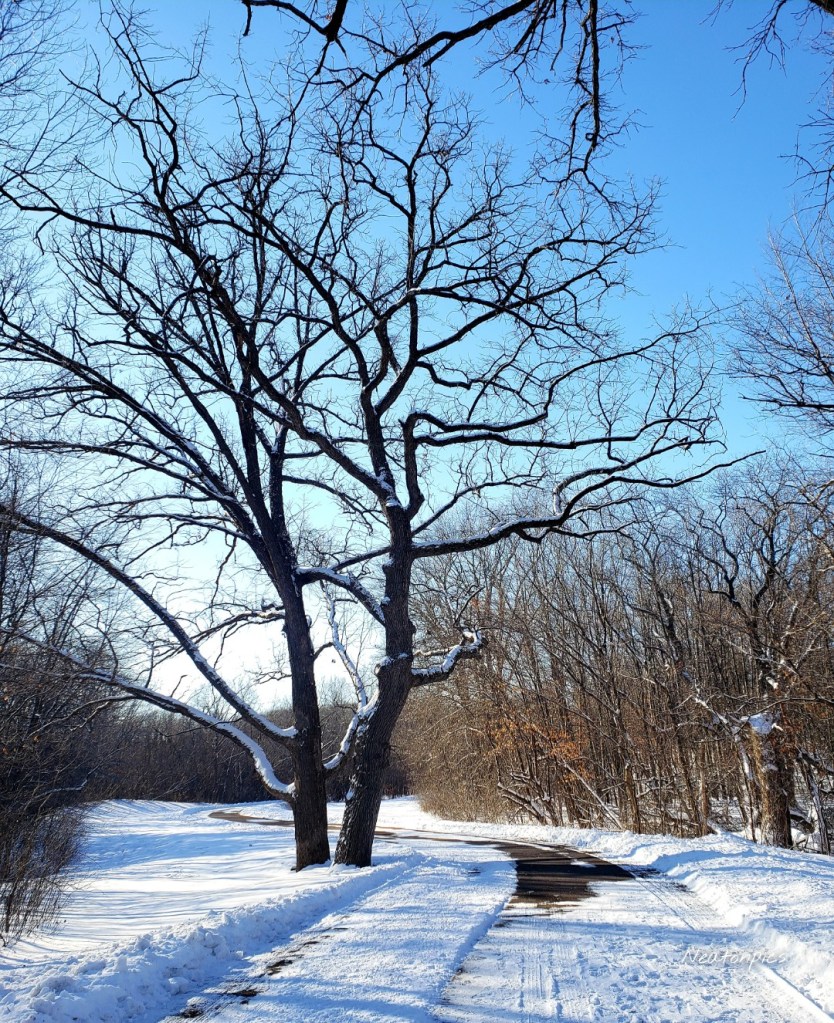 Without any trail maps posted we found we had exited the park after the trail went under Highway 41. We walked along the highway until we saw a dog park across the way. A quick loop around the dog park allowed us to hike on the fresh covered snow trails.