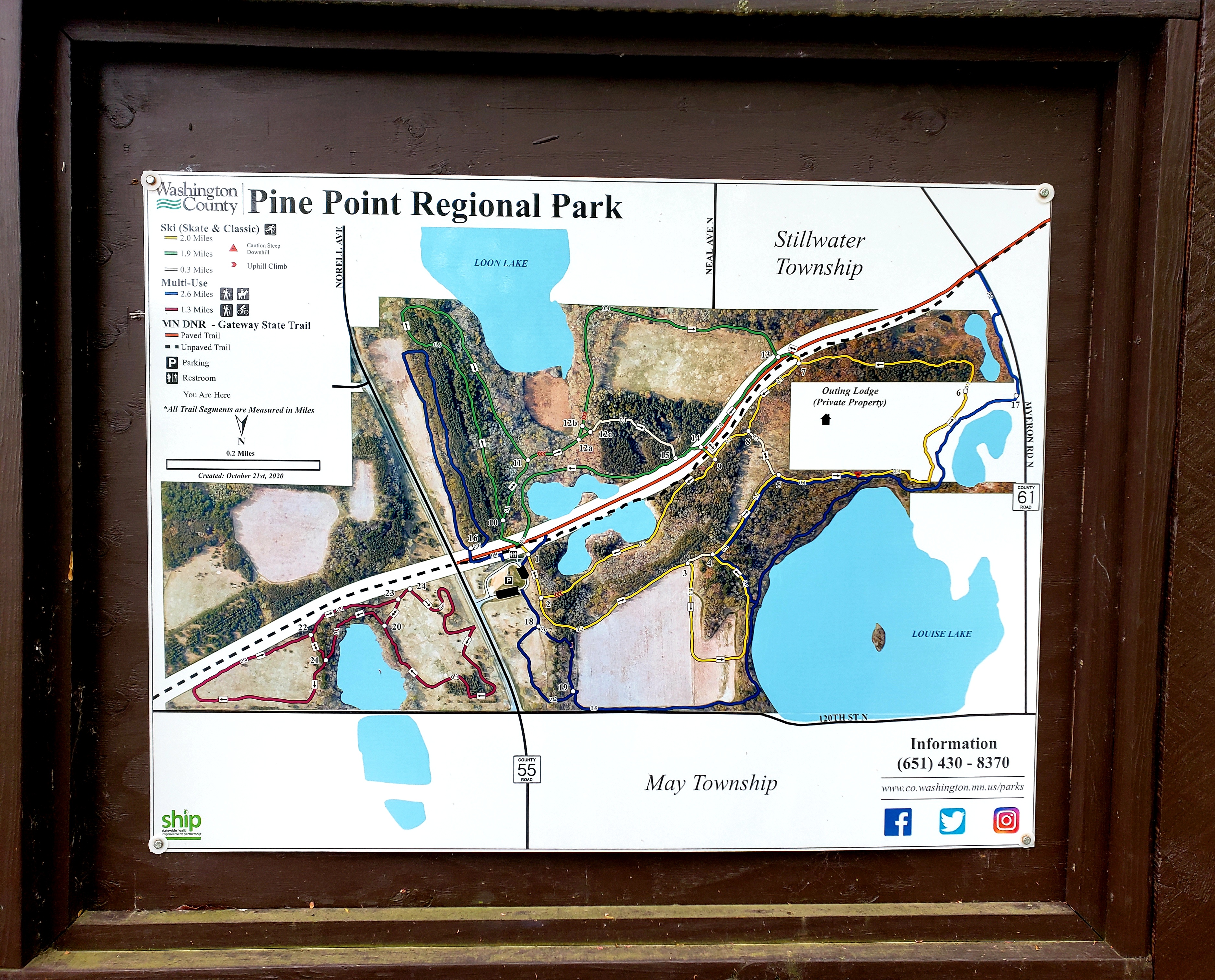 Today’s hiking adventure began at Pine Point Regional Park. This Washington County Park allows the trails to be used for hikers, bikers and our equine friends. The paved Gateway Trail cuts through the park. Most of the bikers we saw stayed on this trail. The trail map showed four different color coded looping trails. We decided to hike all four.