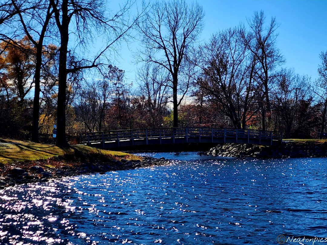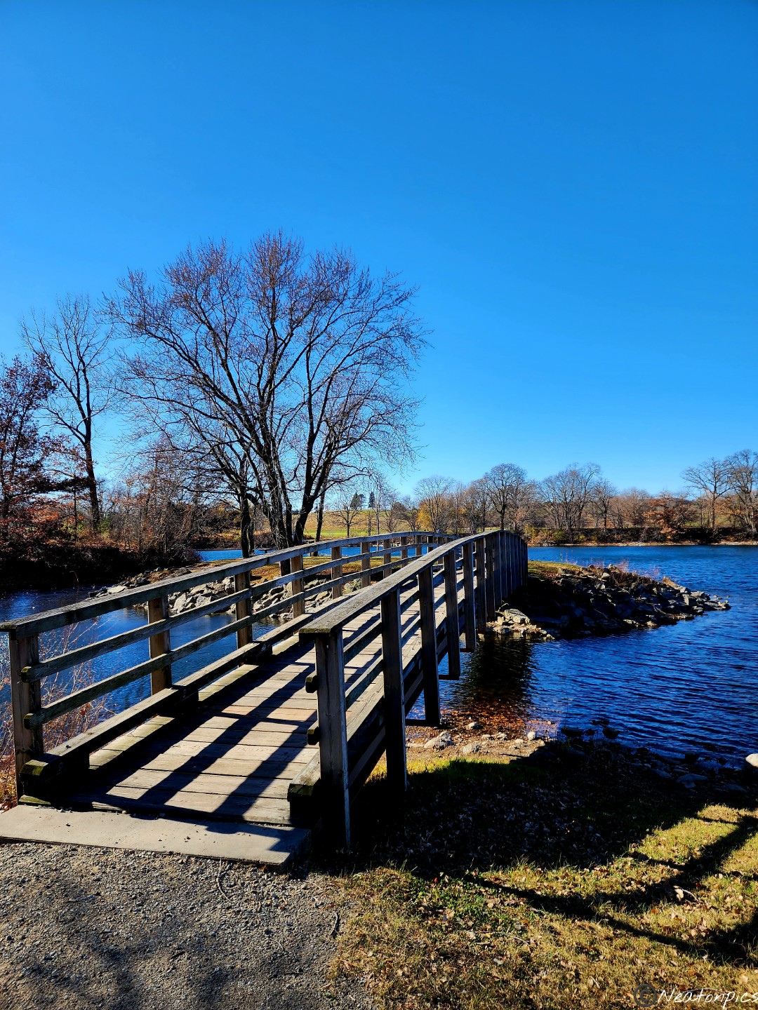 The bridge brought us to a small island. Ducks were swimming all around us and the geese could be heard gossiping with each other in the distance.