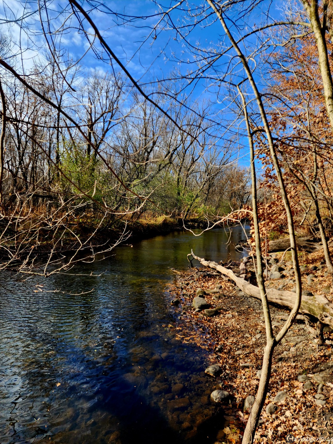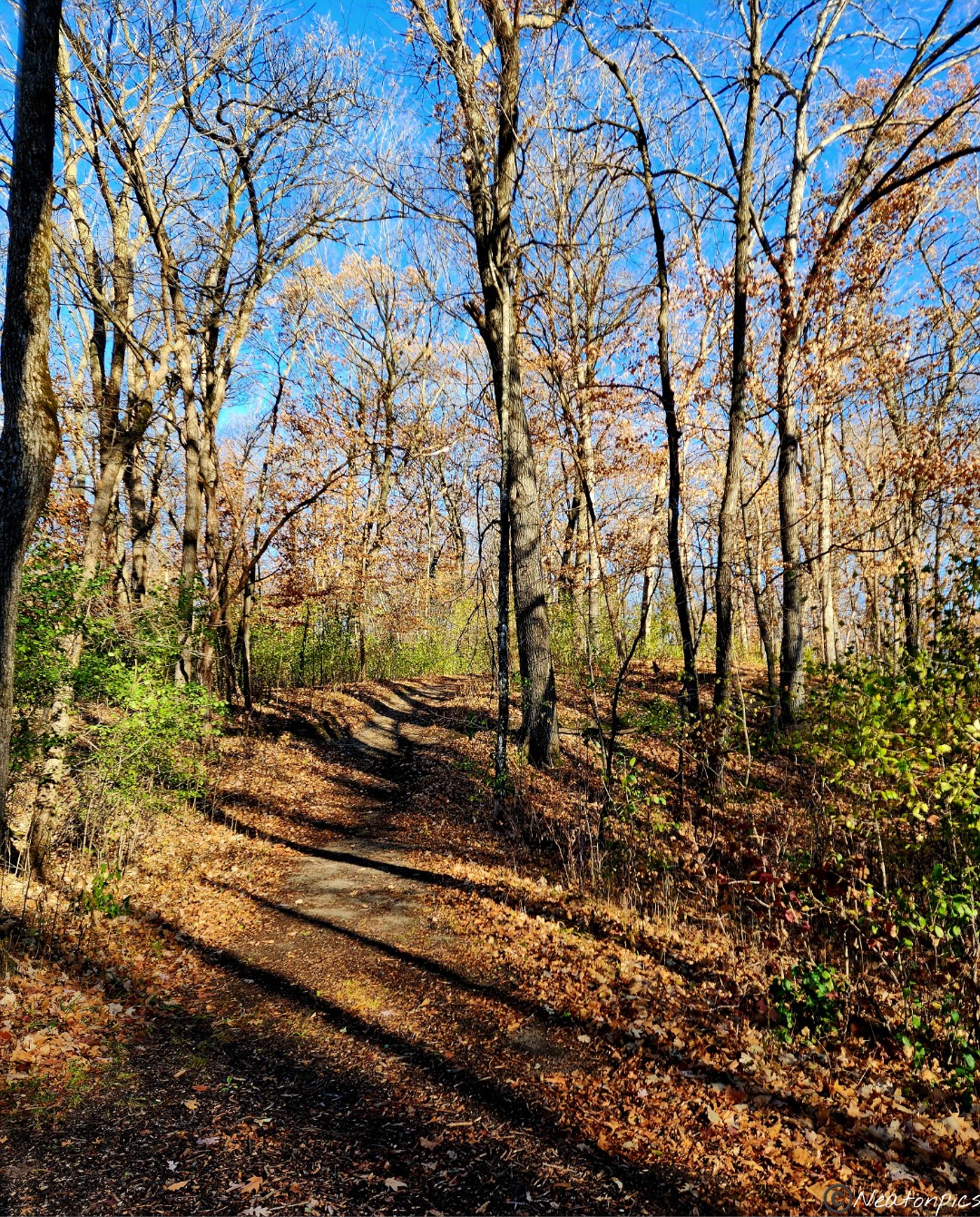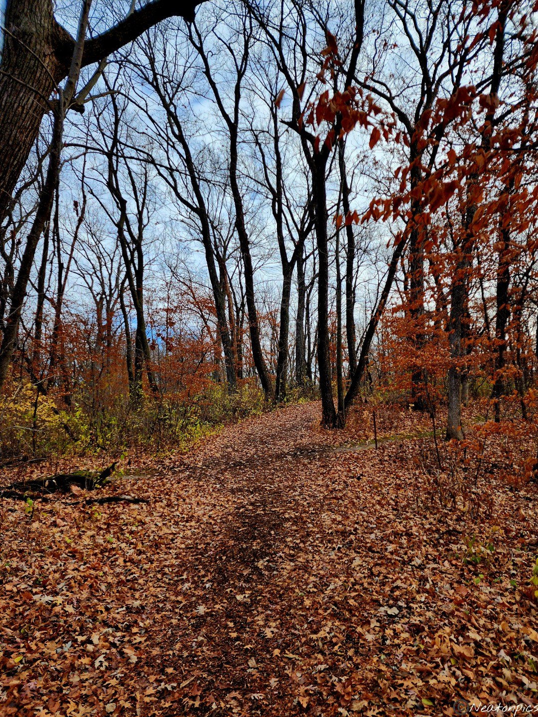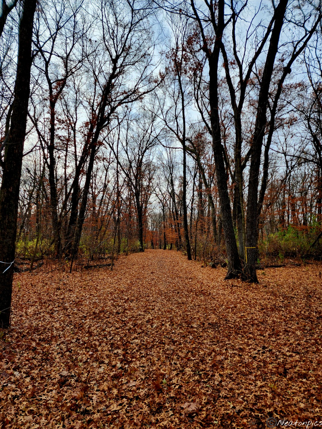 The temperature was a cool 44 degrees and the sun was beginning to shine as we began our adventure. Thick leaves layered the unpaved trail.