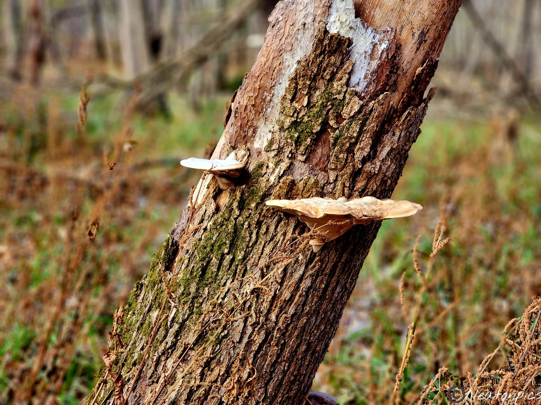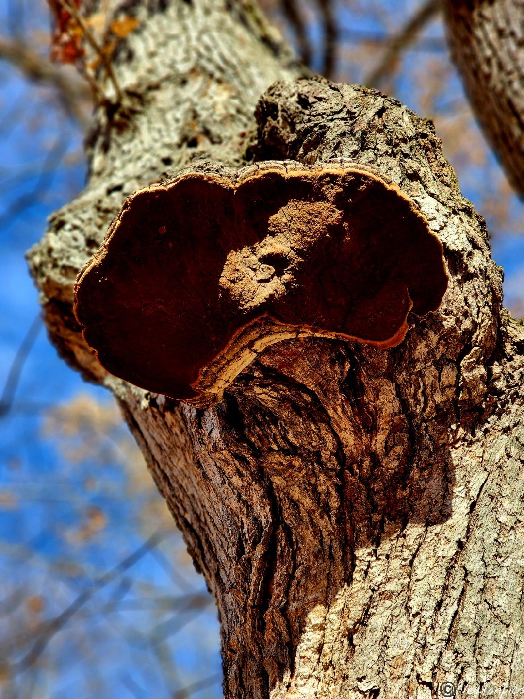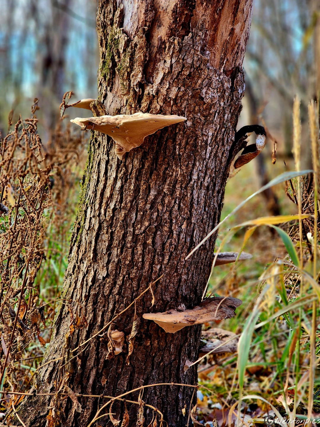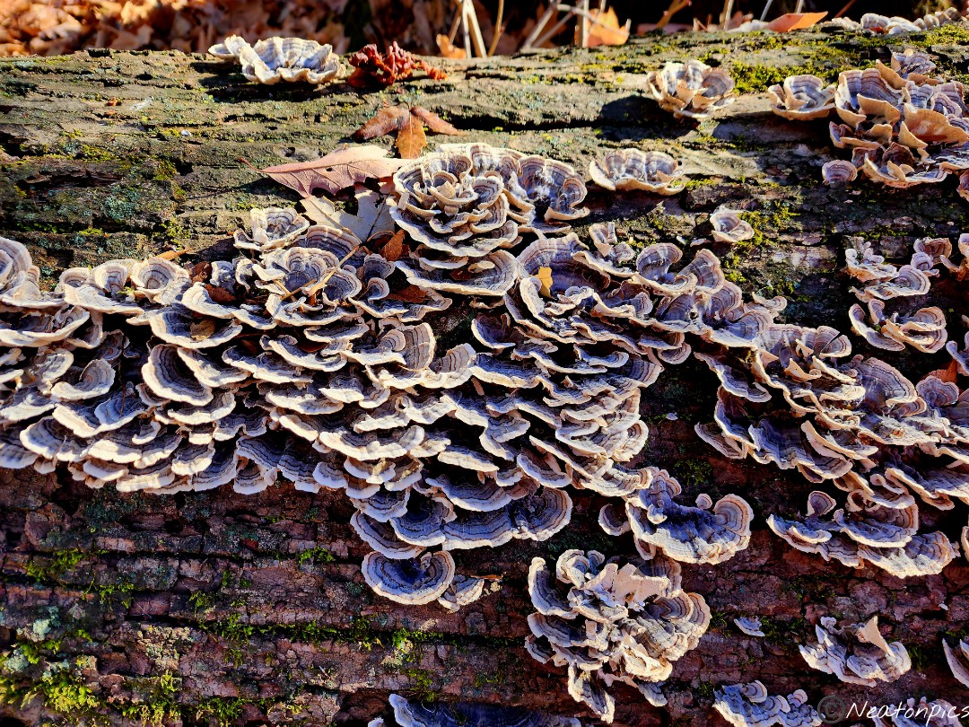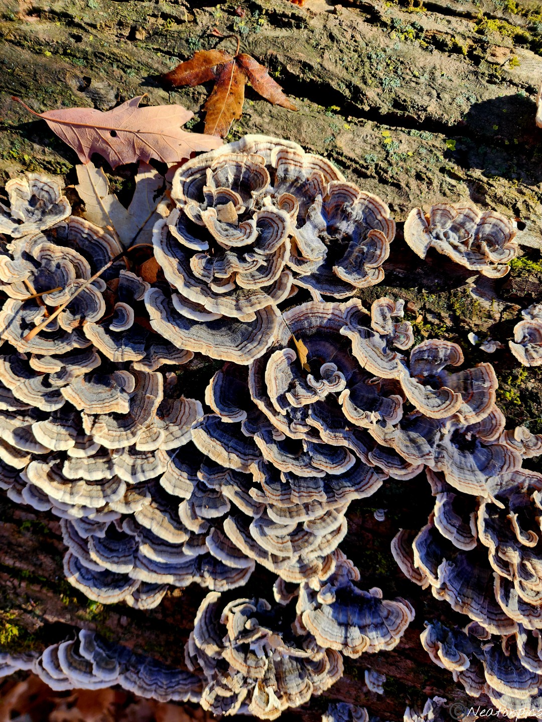 The many mushrooms on the logs are incredible! The blue of the water is beautiful!!