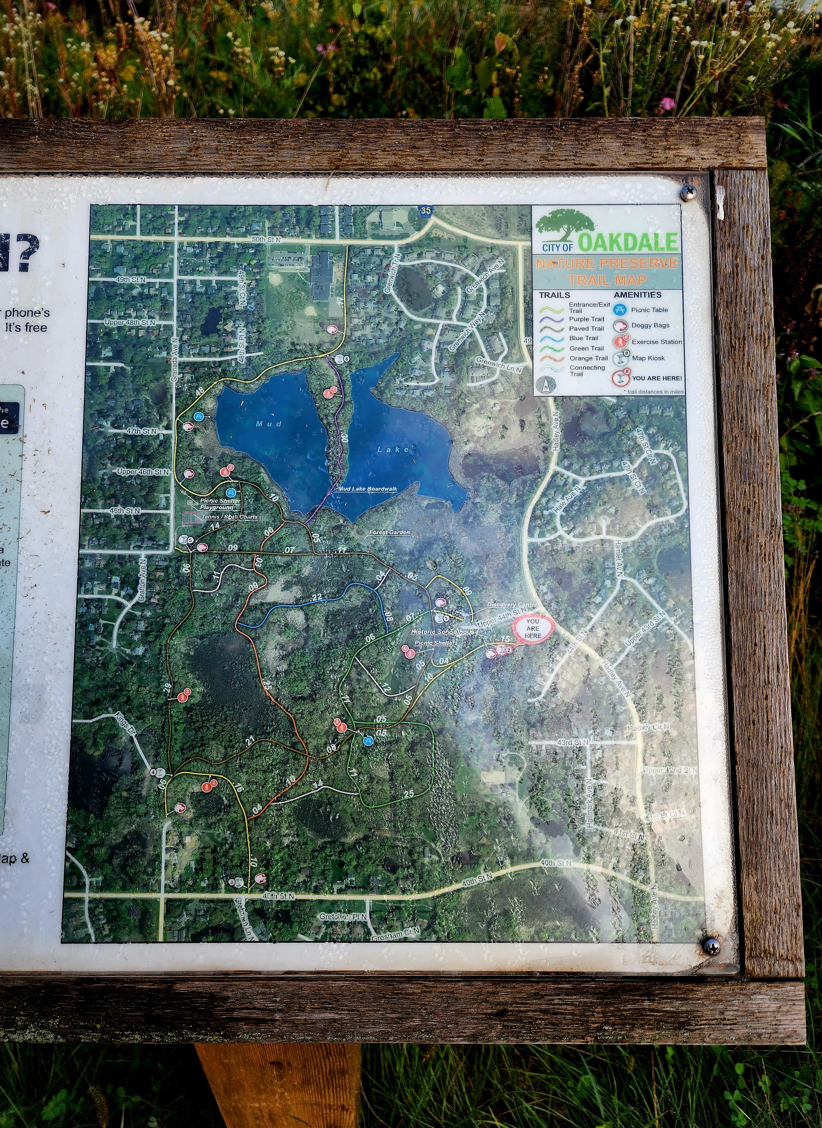 The Dakota Trail ended by the Nature Store. We stopped in for a refill of cold water and began the Meadow Trail. We crossed back over the Whitewater River. Colorful wildflowers popped out among the vast amount of greenery.