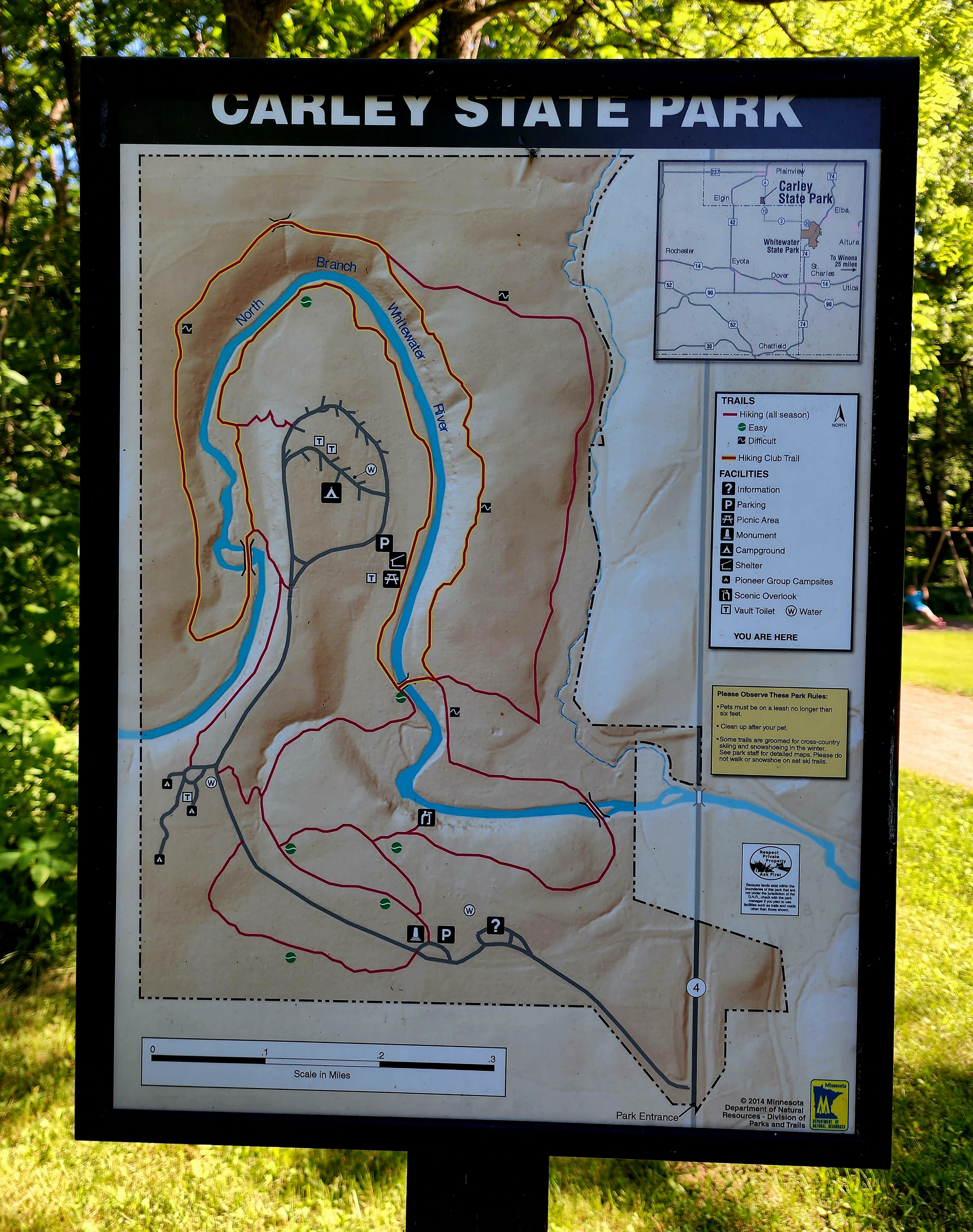Our hike began on the Coyote Point Trail. The trail is rated difficult which we soon learned why. As soon as we crossed over the Middle Branch Whitewater River the trail went straight up the bluffs.