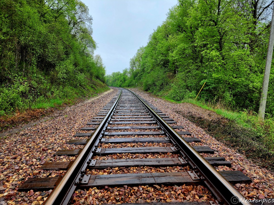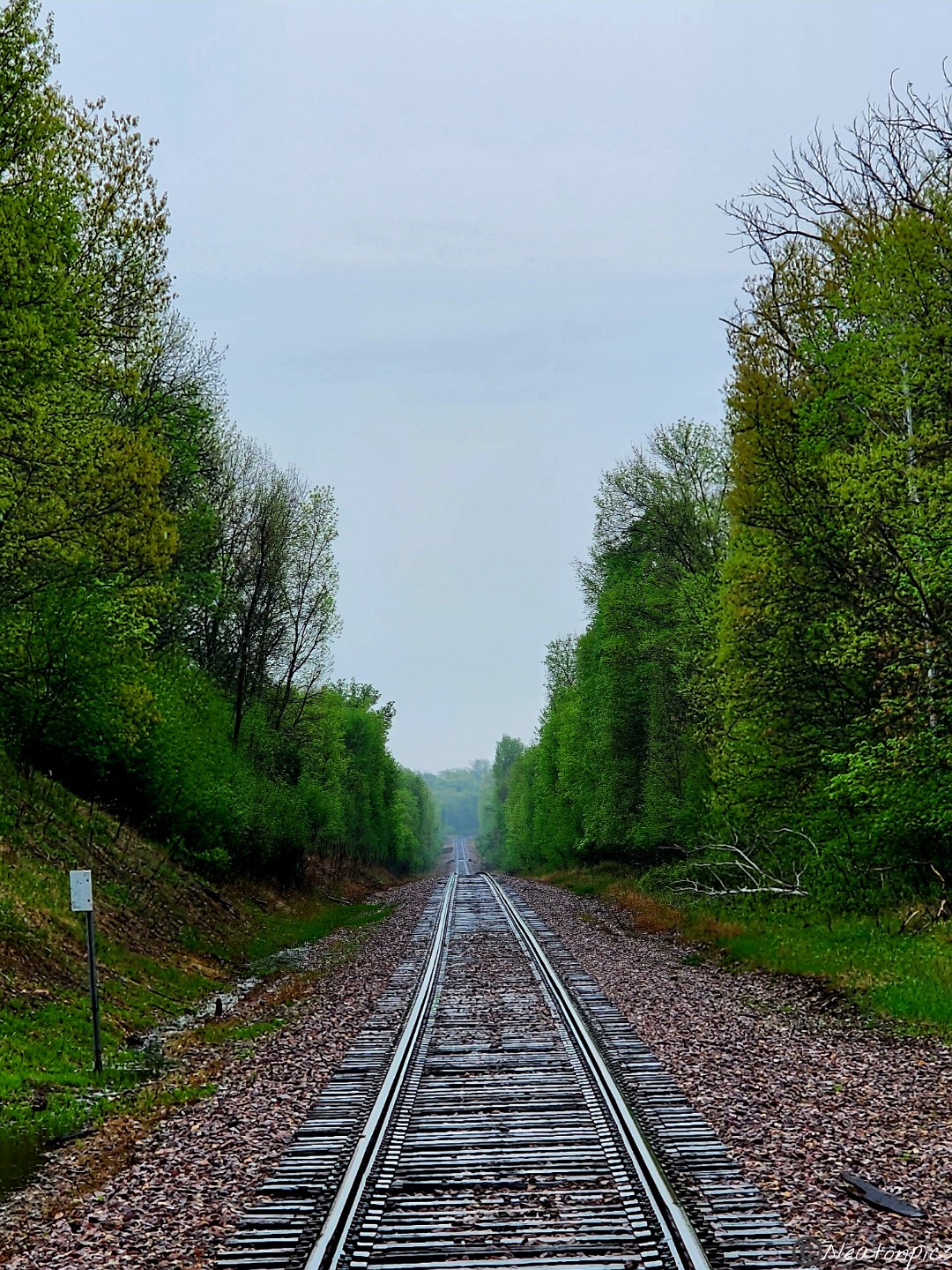 The trail laid parallel to the train tracks. We momentarily diverted from the trail to the train tracks.