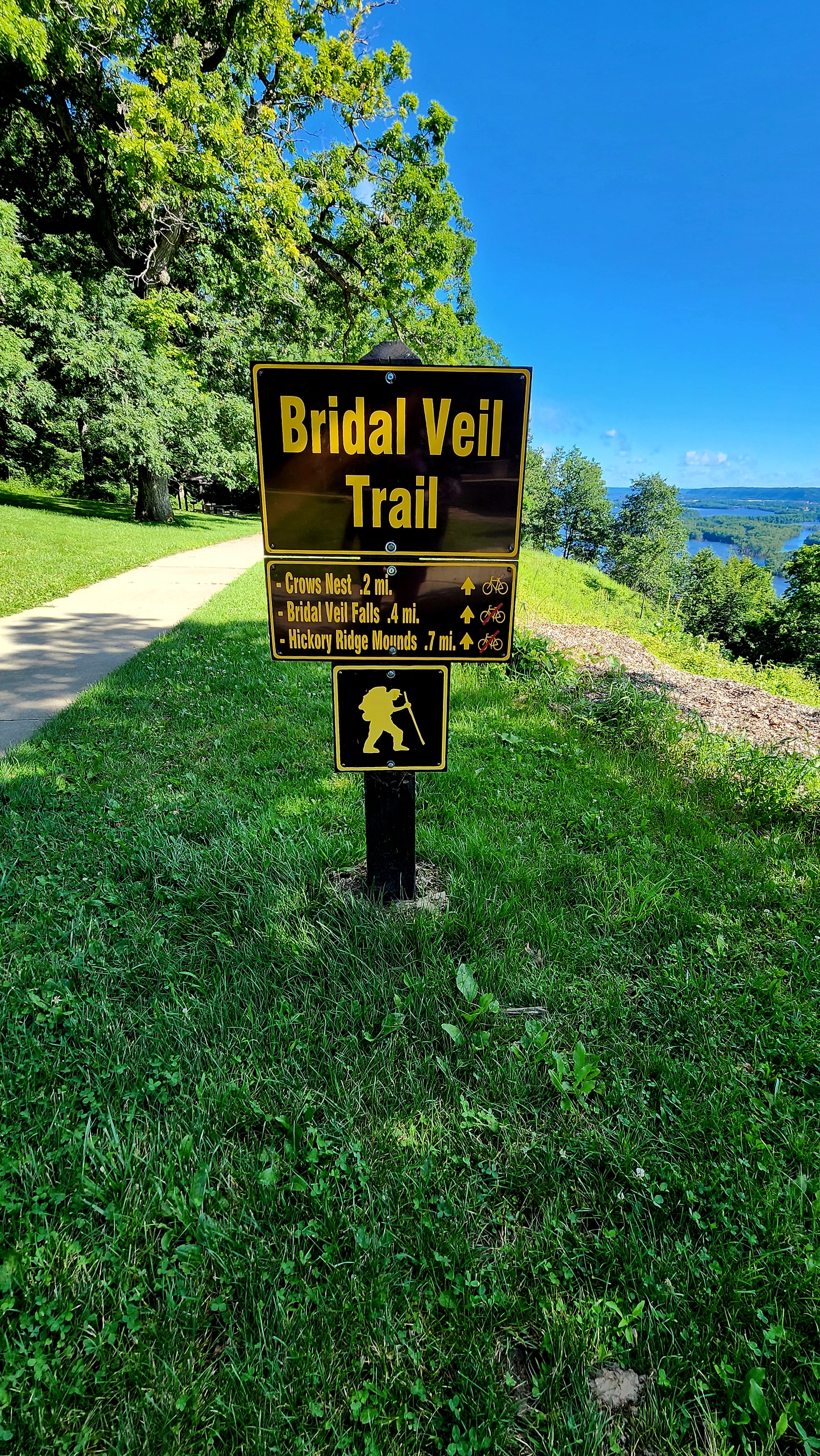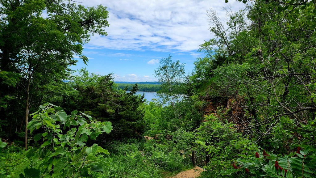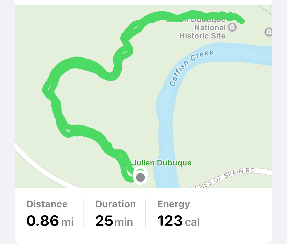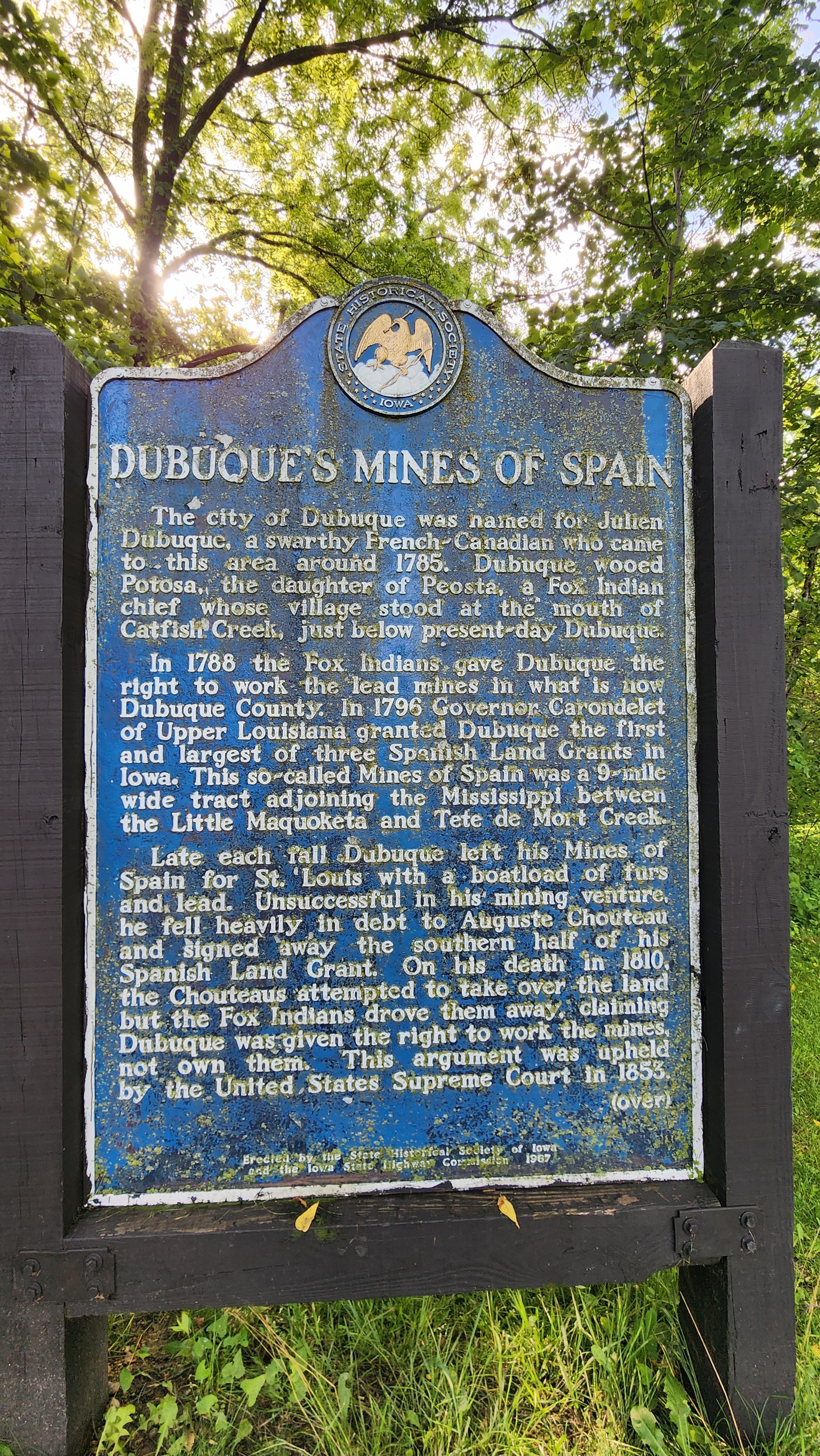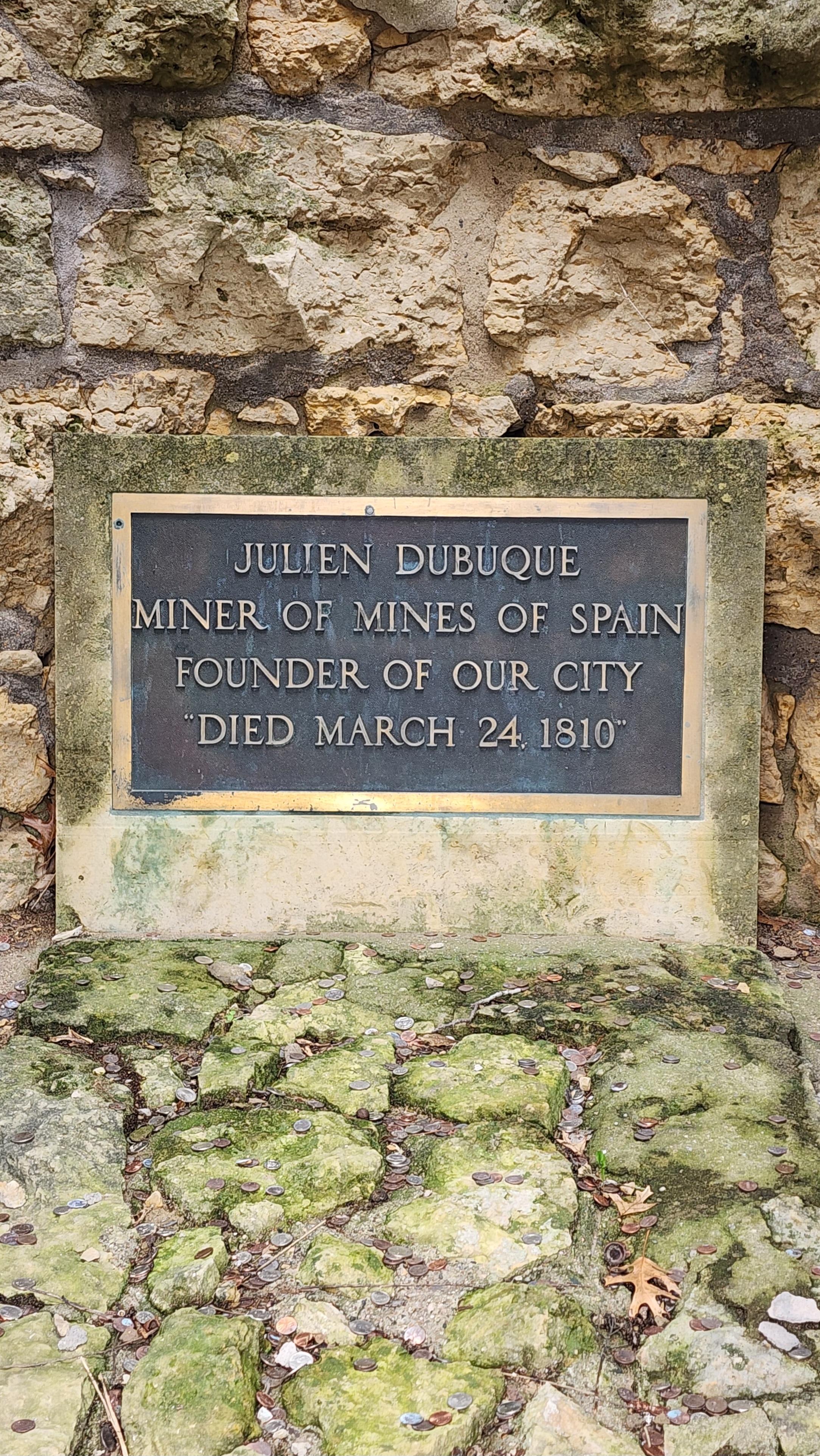 Down the road a bit, we pulled over to hike the Julien Dubuque Foot Trail. The trail at ground level was flooded so we made our way to the second trail leading us to the Julien Dubuque Monument.