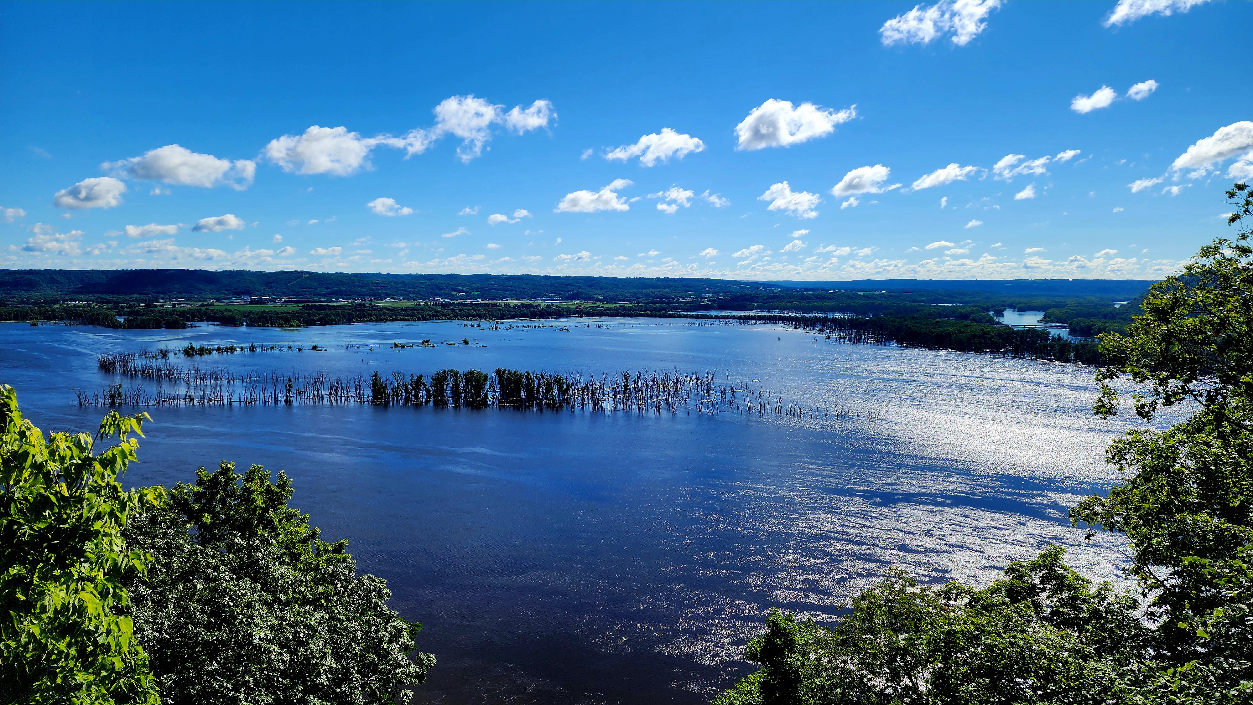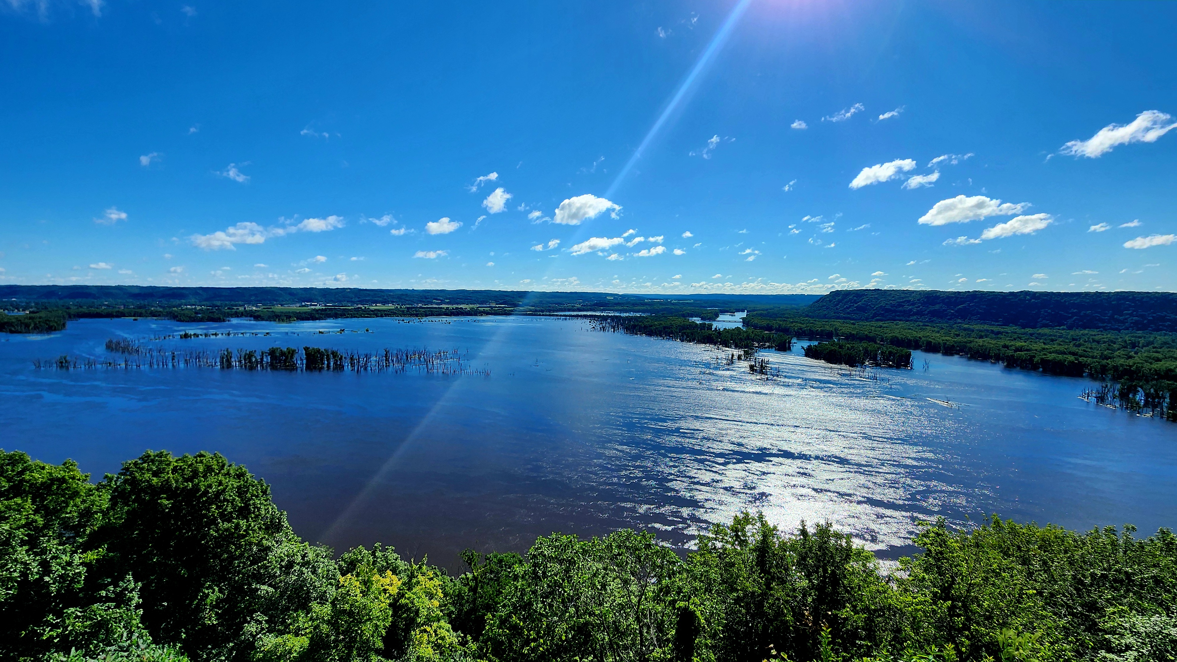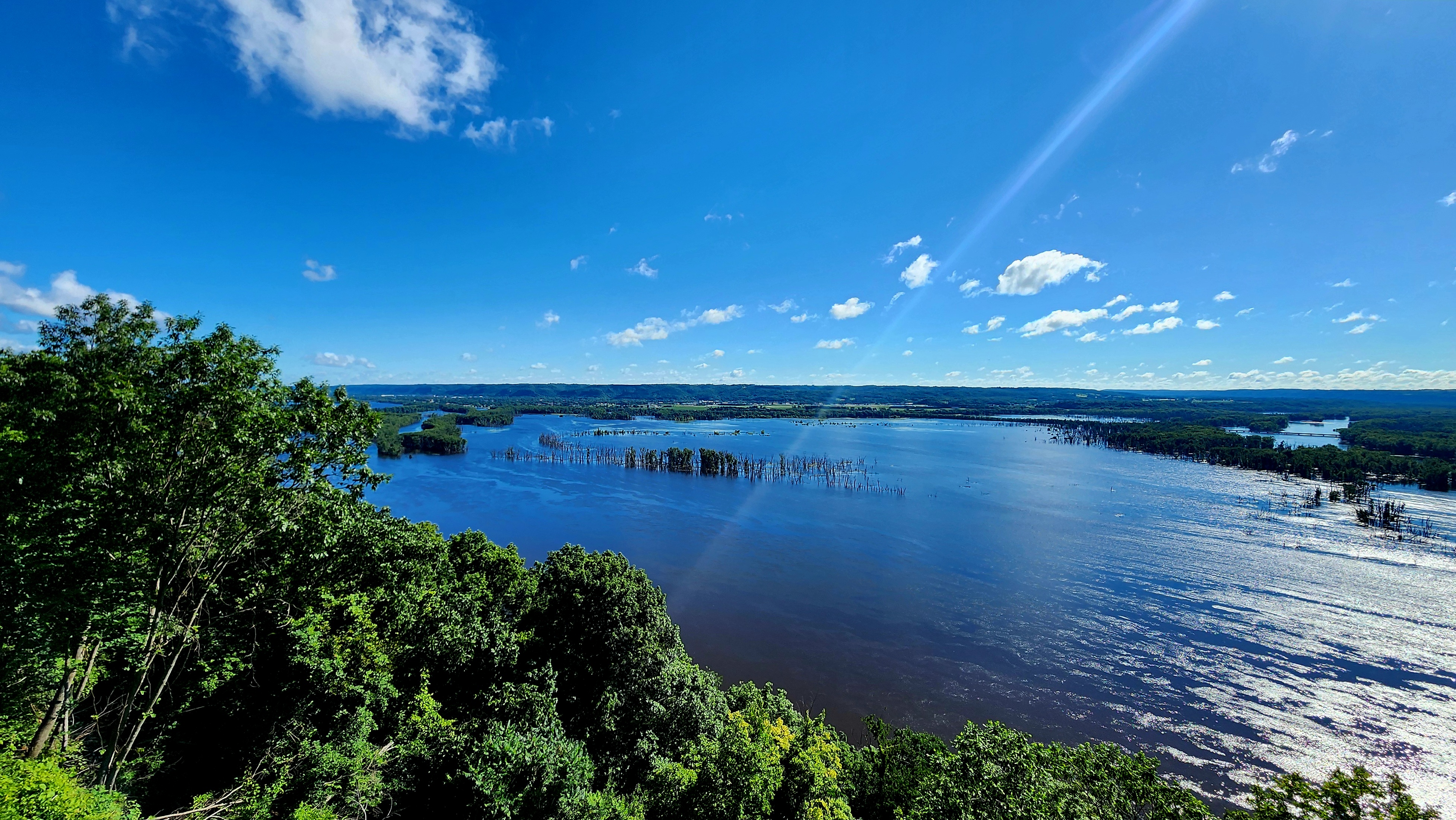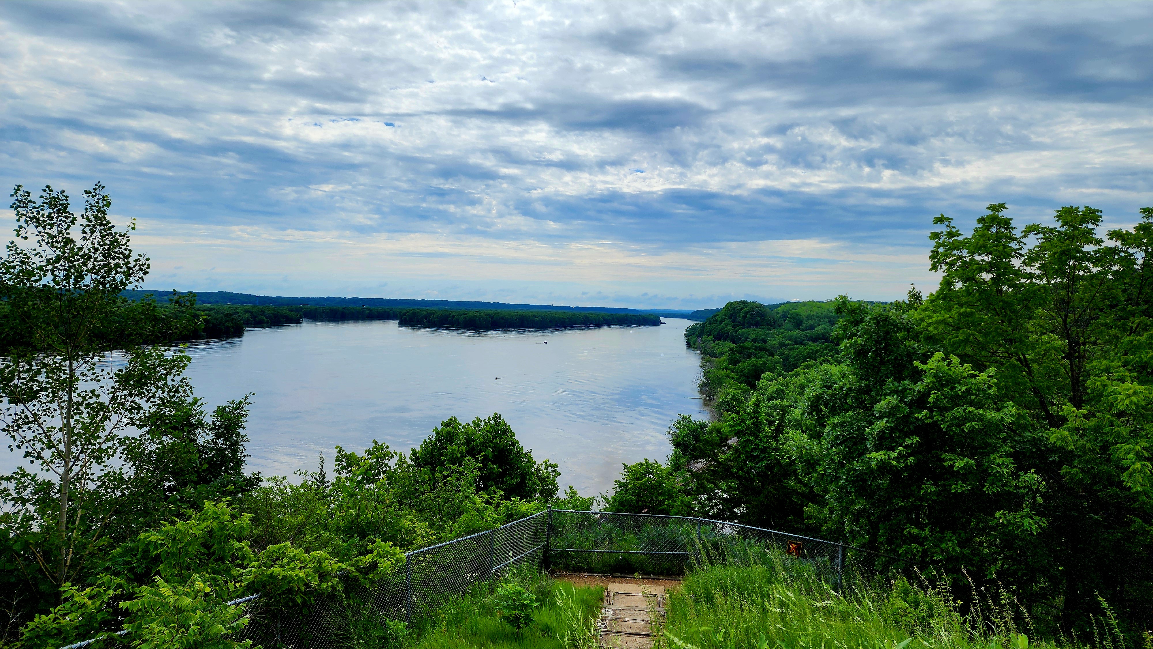 The view was worth the climb. It always is. The overflowing Mighty Mississippi River rushed past us.