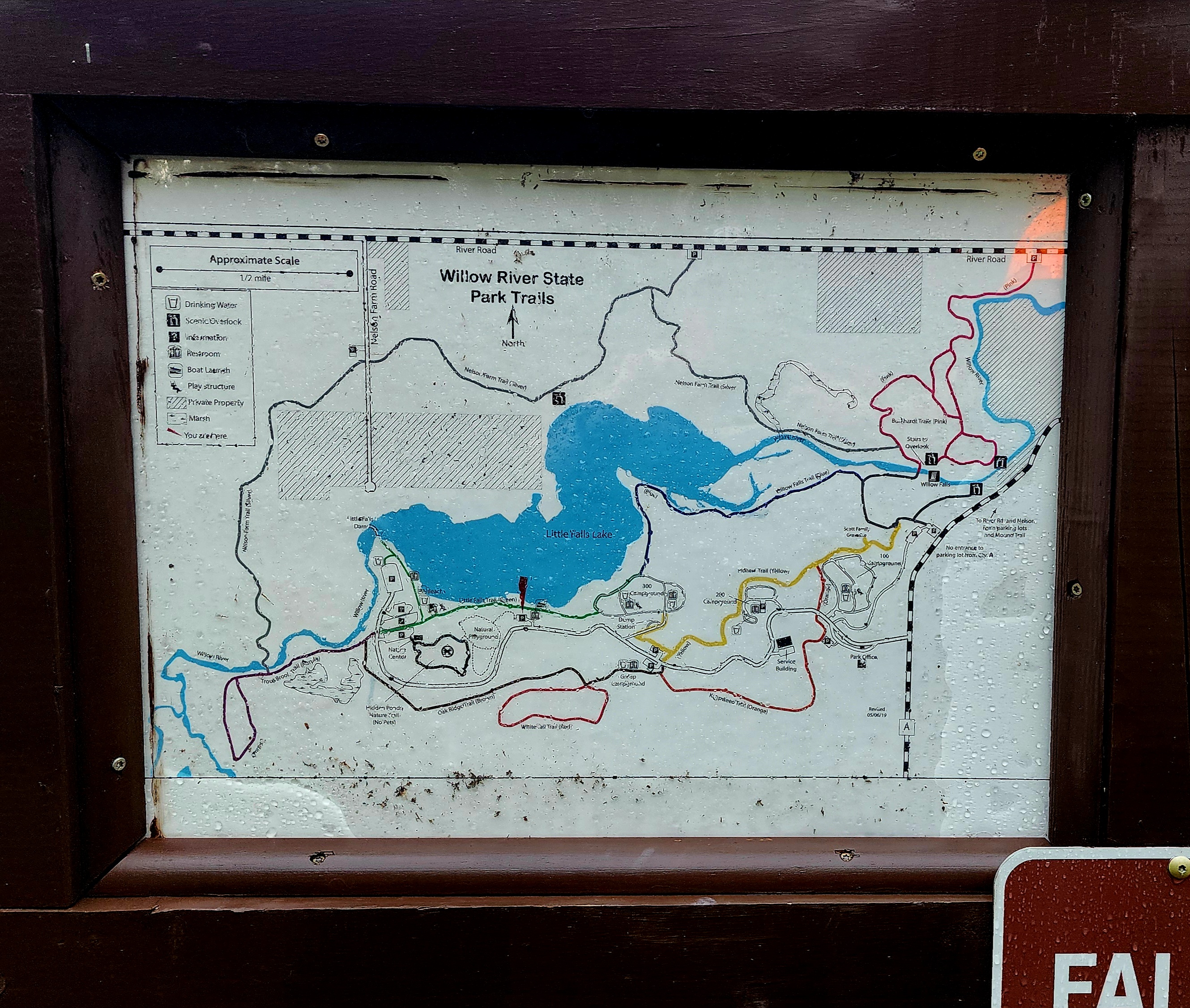 We parked by Little Falls Lake Beach. As soon as we put on our hiking boots, the sky opened up and the rain poured. Thankfully, there was a large picnic shelter for us to ride out the thunderstorm. Almost an hour passed before we were able to begin our hike to Willow Falls.
