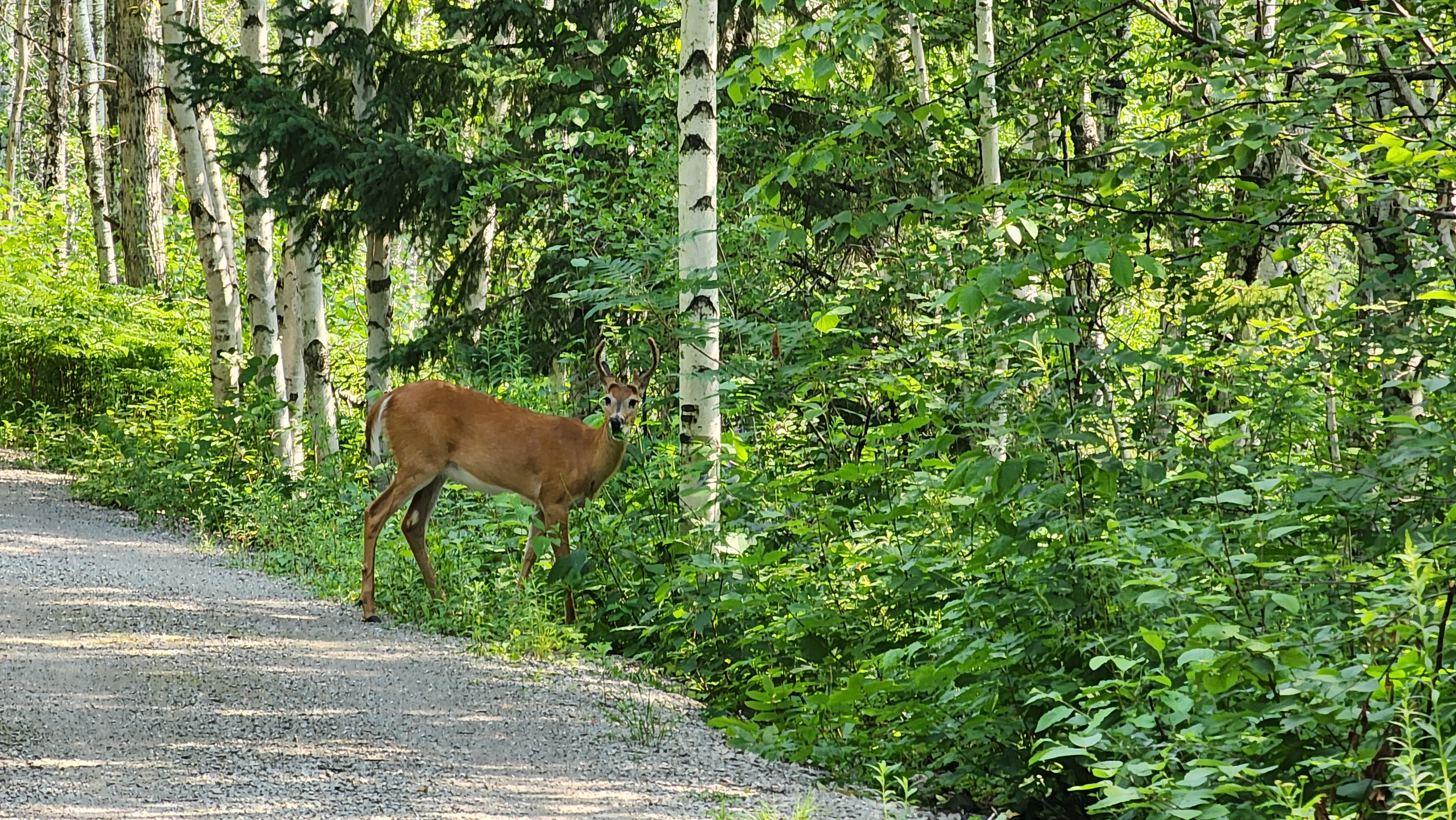 Four deer appeared right next to where we were on the trail. With all the new growth it was hard to see them.