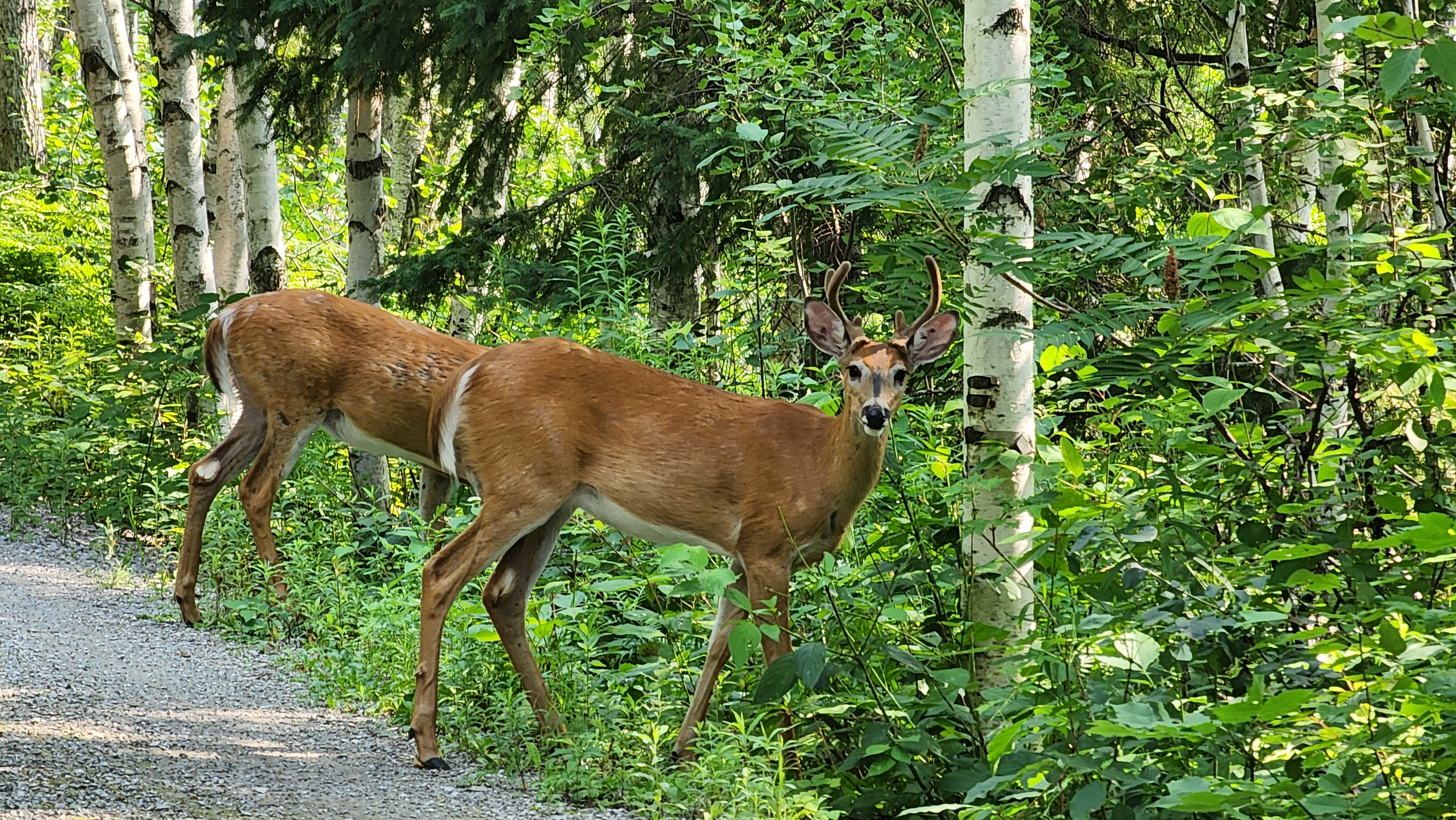 The universe gifted me with a wonderful birthday present. Two bucks crossed the trail right in front of us. We must have been able to get within 25 feet of the deer. Amazing!
