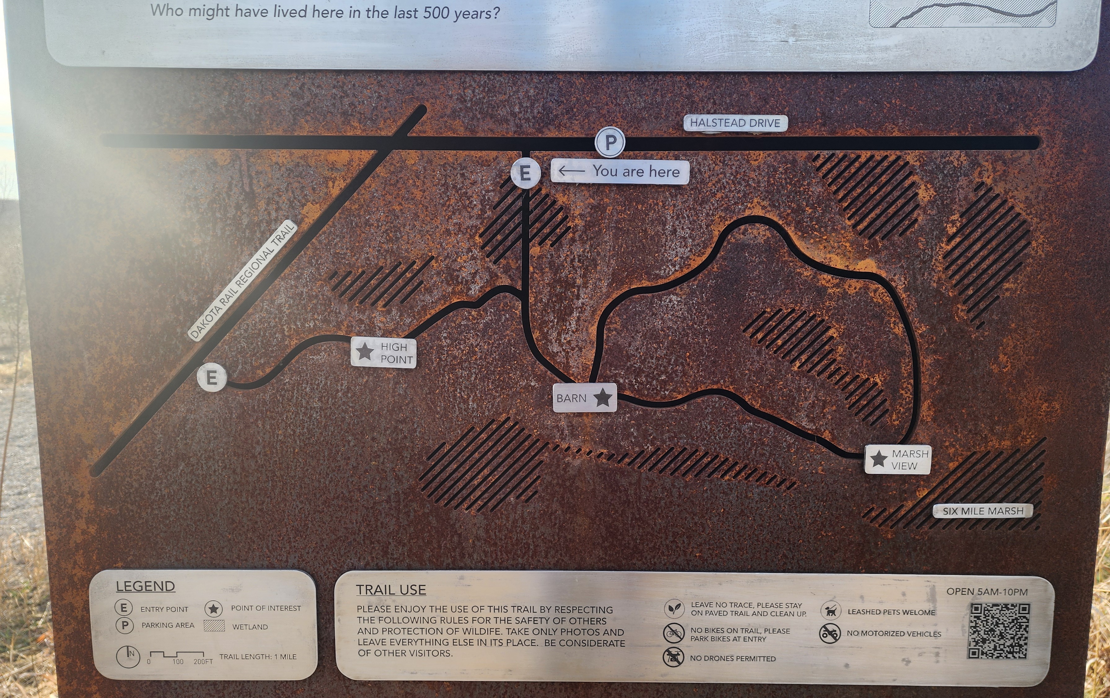 After completing the Six Mile Marsh Prairie Trail, we hiked along the Dakota Rail Regional Trail.