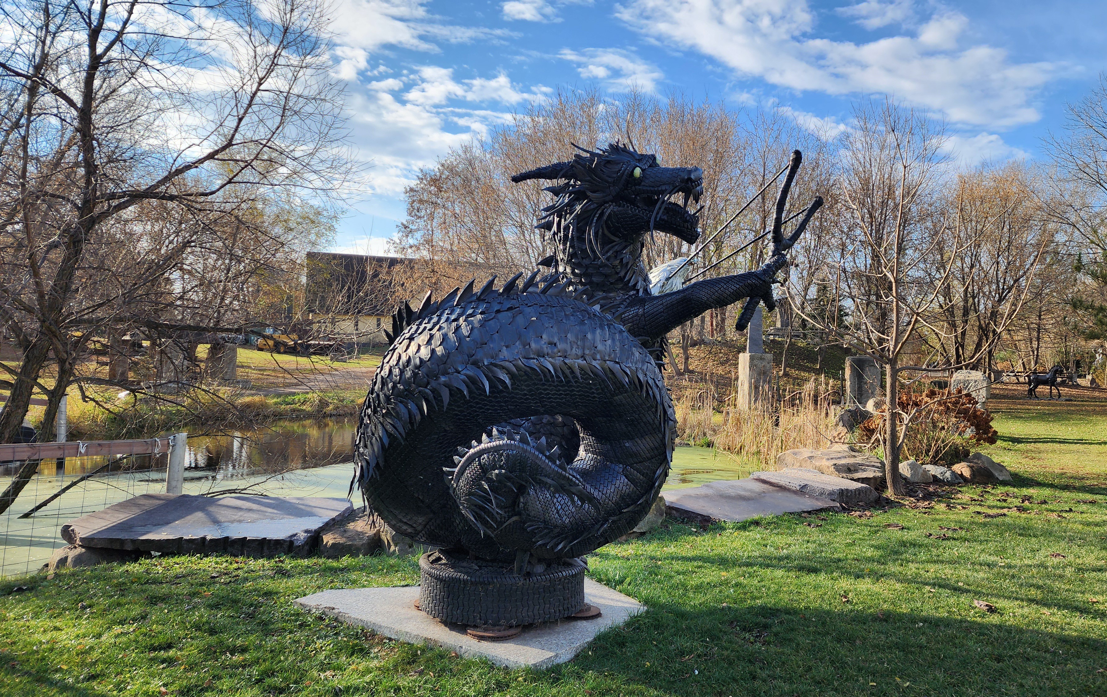About a mile or so down the Dakota Rail Regional Trail we approached a sign for the Big Stone Mini Golf and Sculpture Garden. We decided to check it out, and I’m so happy we did! They had many fun sculptures and farm animals on the property.