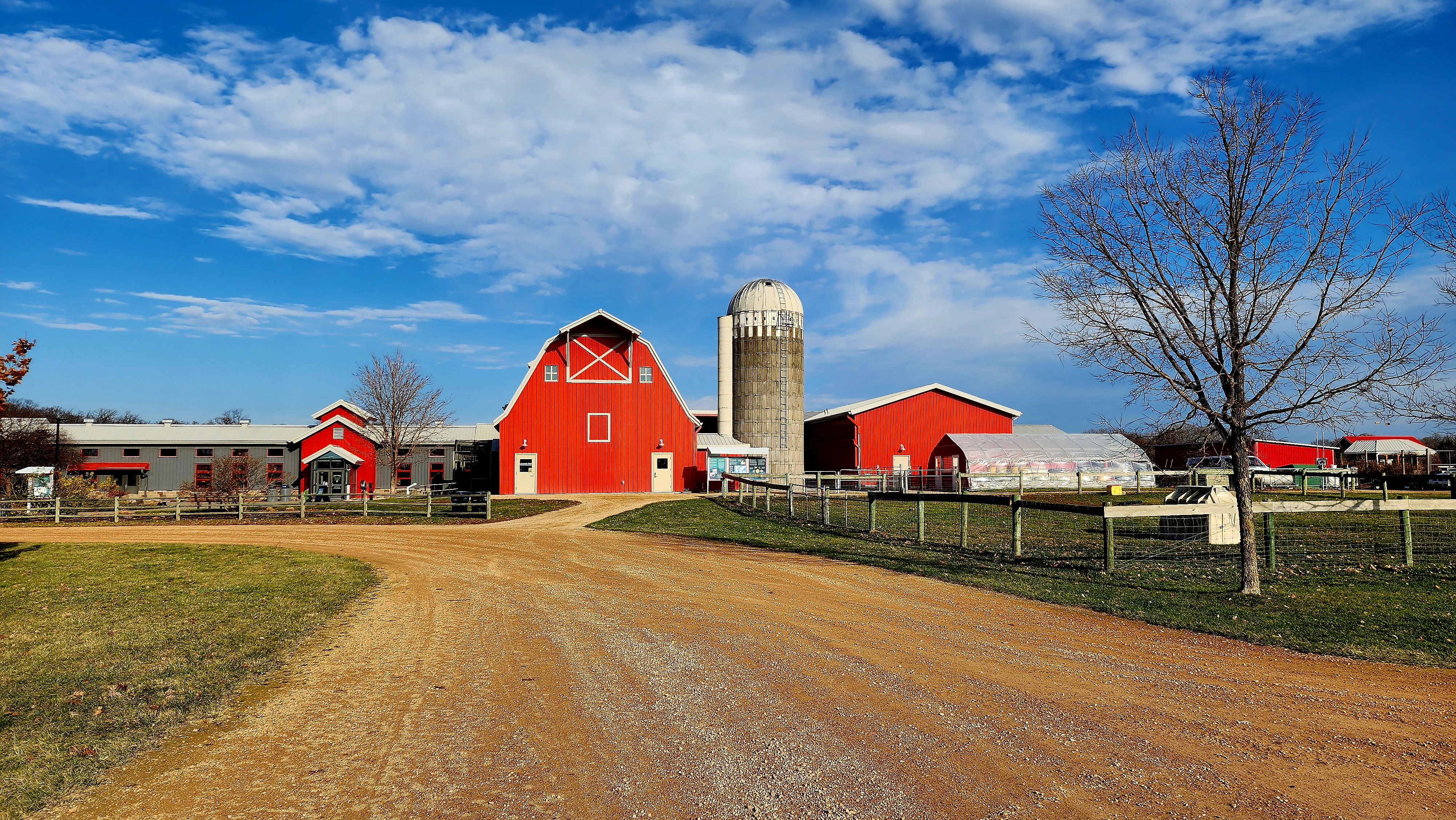 We made our way back to the Dakota Rail Regional Trail to continue our hike. A sign for Gale Woods Farm appeared just off the trail. We decided to check it out since we were so close. They also had a beautiful red barn and farm animals.