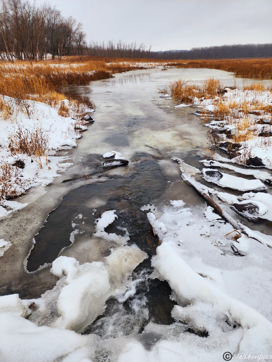 In order to stay on the trail, we needed to cross over the creek. Thankfully, we found a way. Not sure if it was a beaver dam, but it worked. We carefully made our way across the creek. The small hill on the other side doesn’t look so big however, it was super muddy and with each step up, we would slide down.