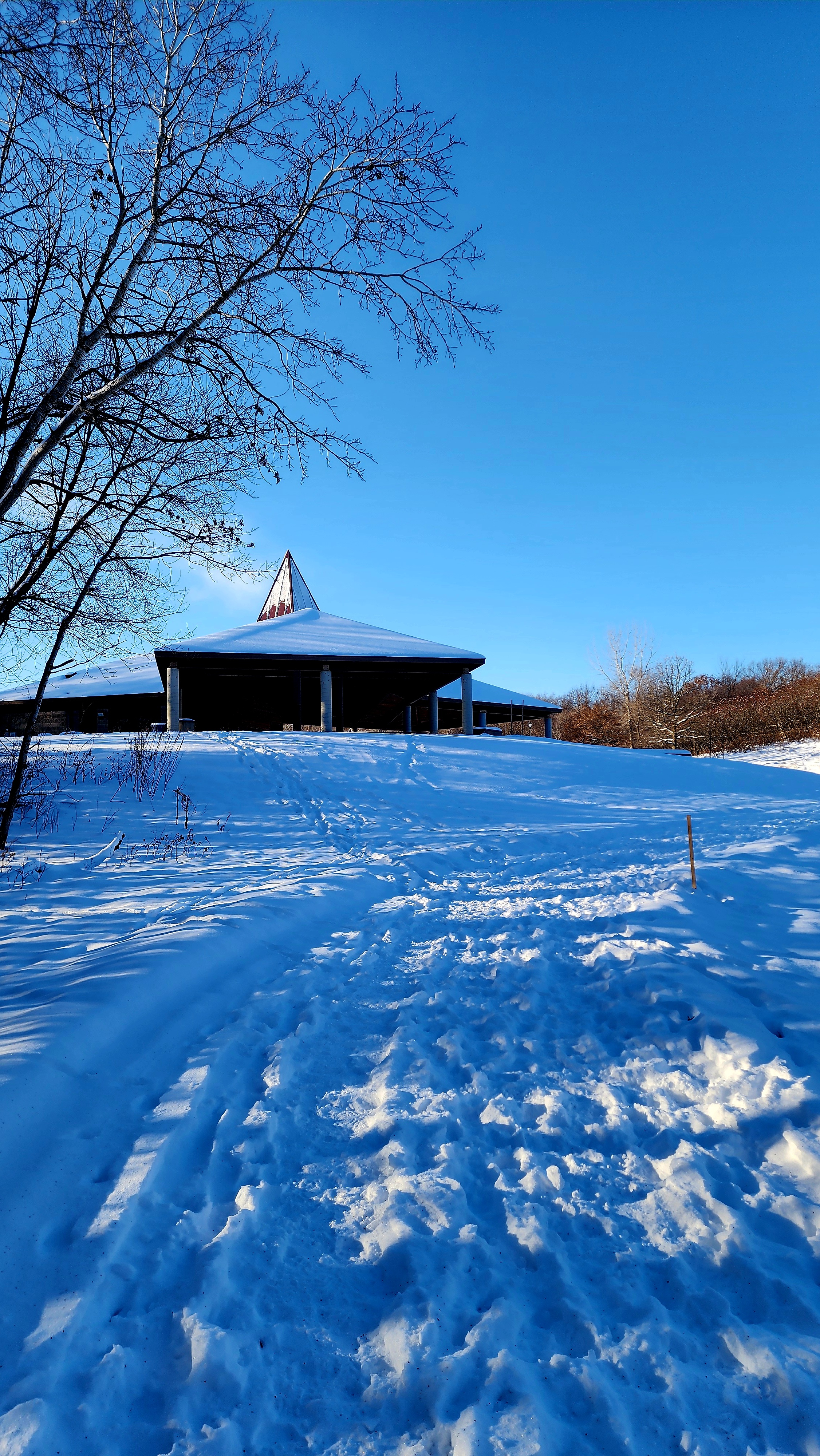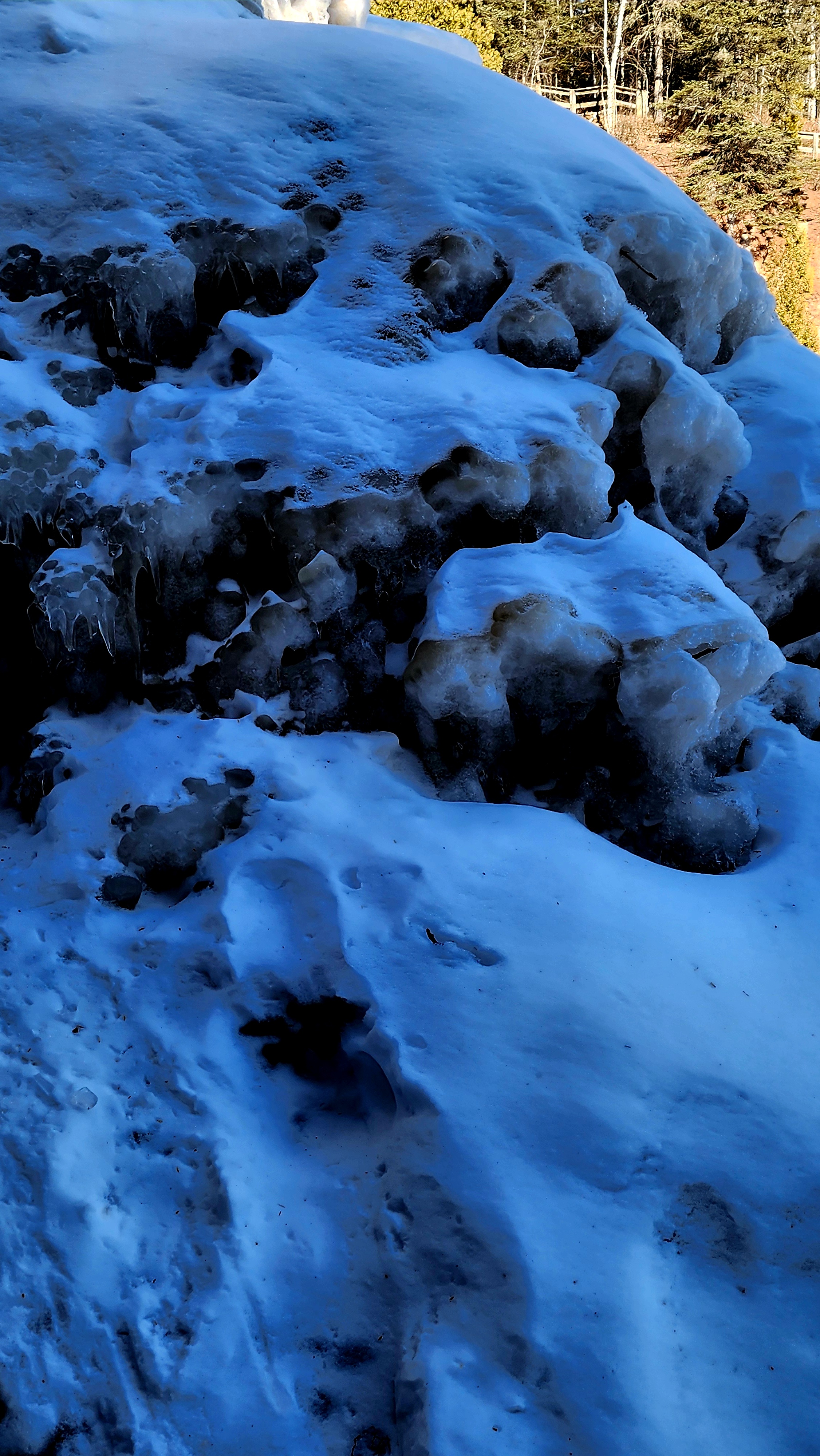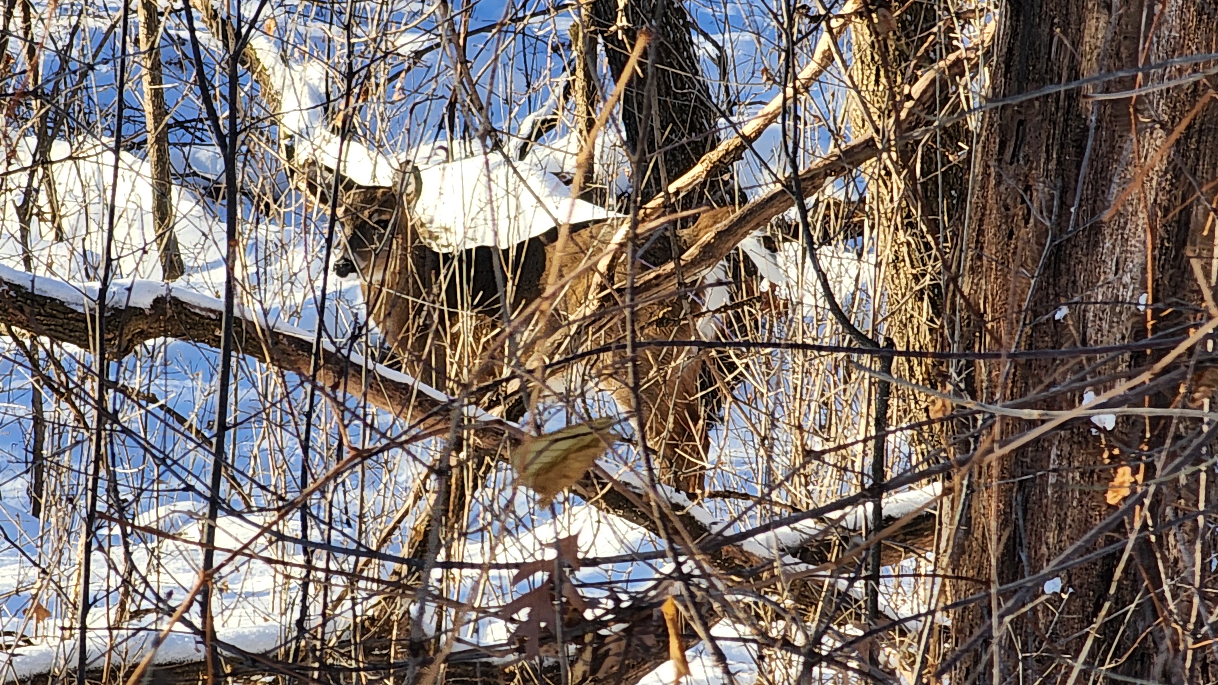 Now, once again, I see something out of the corner of my eye laying down in the snow. It must be another sculpture, right? Nope! There were at least 6 deer laying down in the snow. My photos of the deer are not the best, however, it was a cool experience to see them.