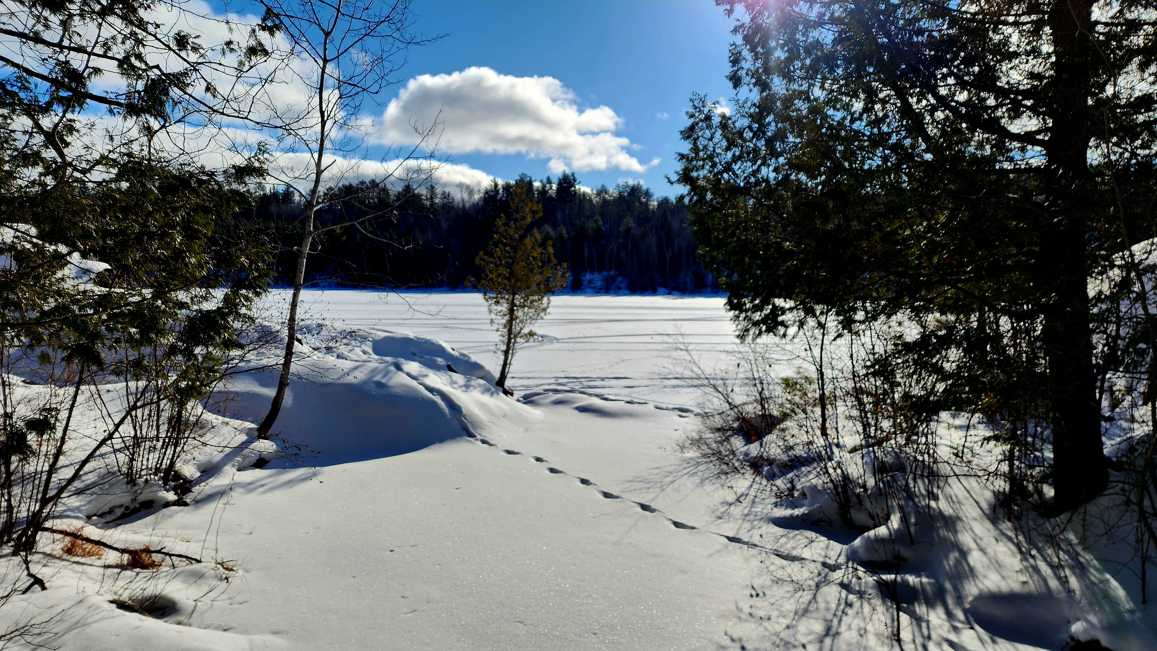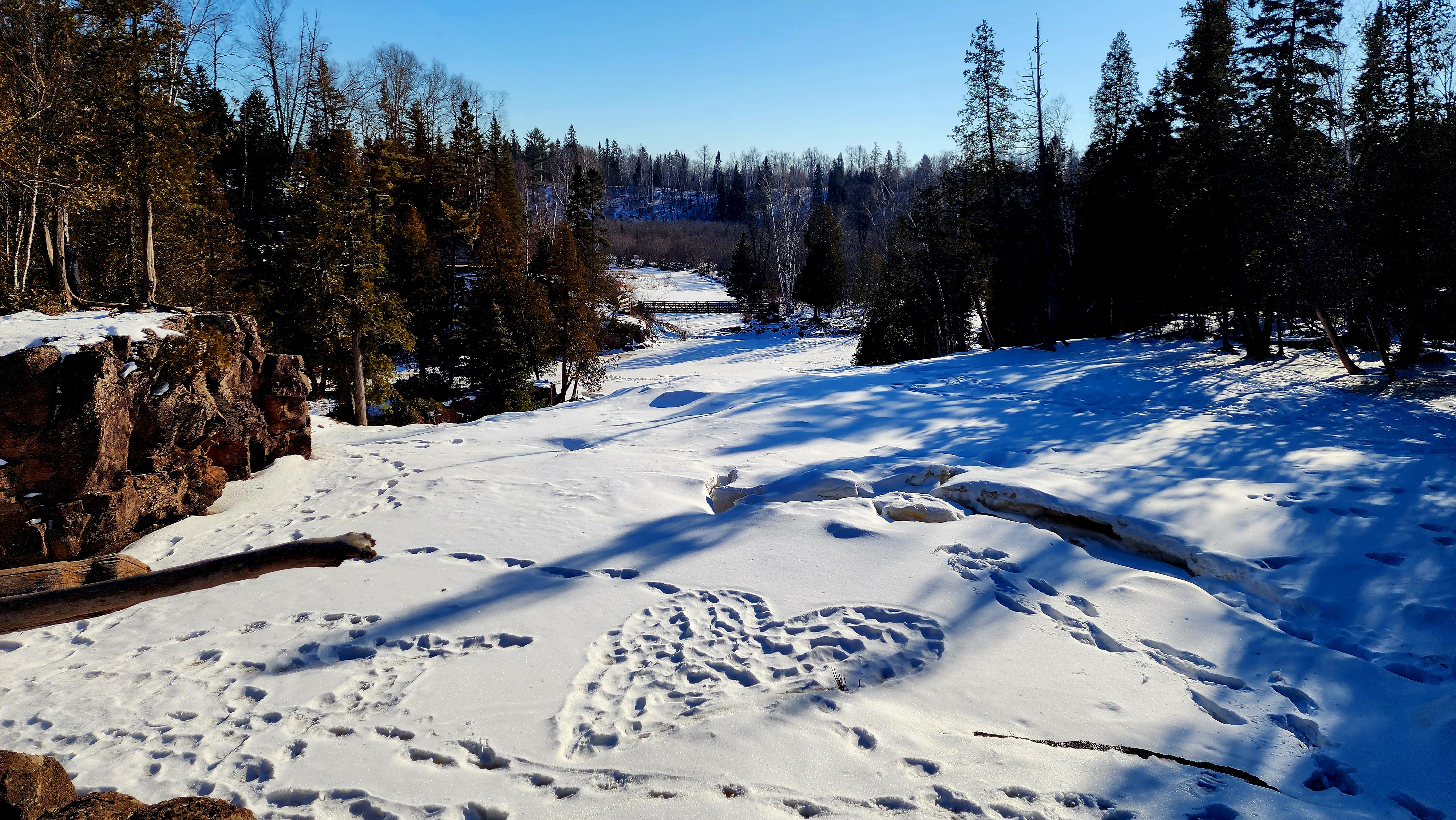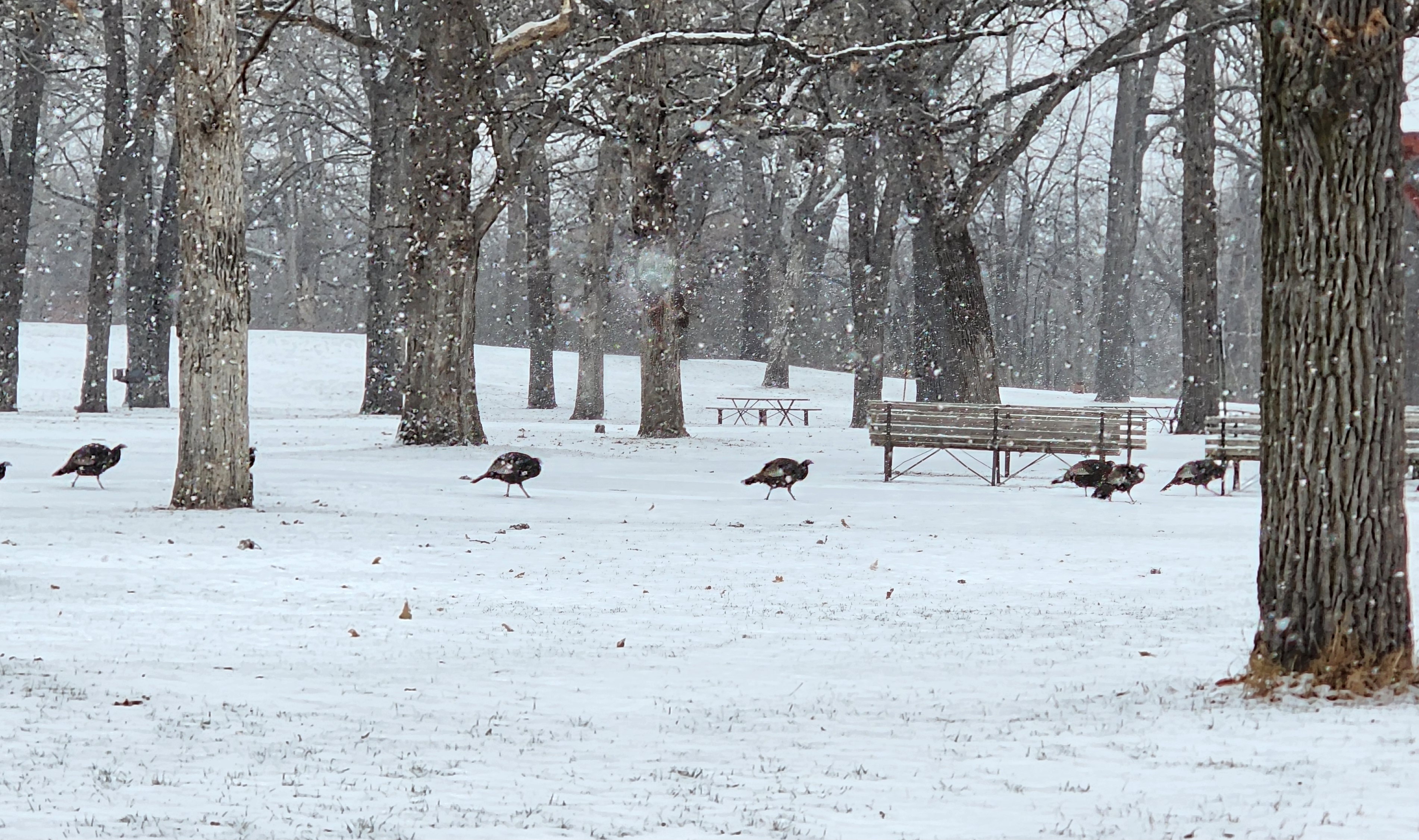 Now, once again, I see something out of the corner of my eye laying down in the snow. It must be another sculpture, right? Nope! There were at least 6 deer laying down in the snow. My photos of the deer are not the best, however, it was a cool experience to see them.