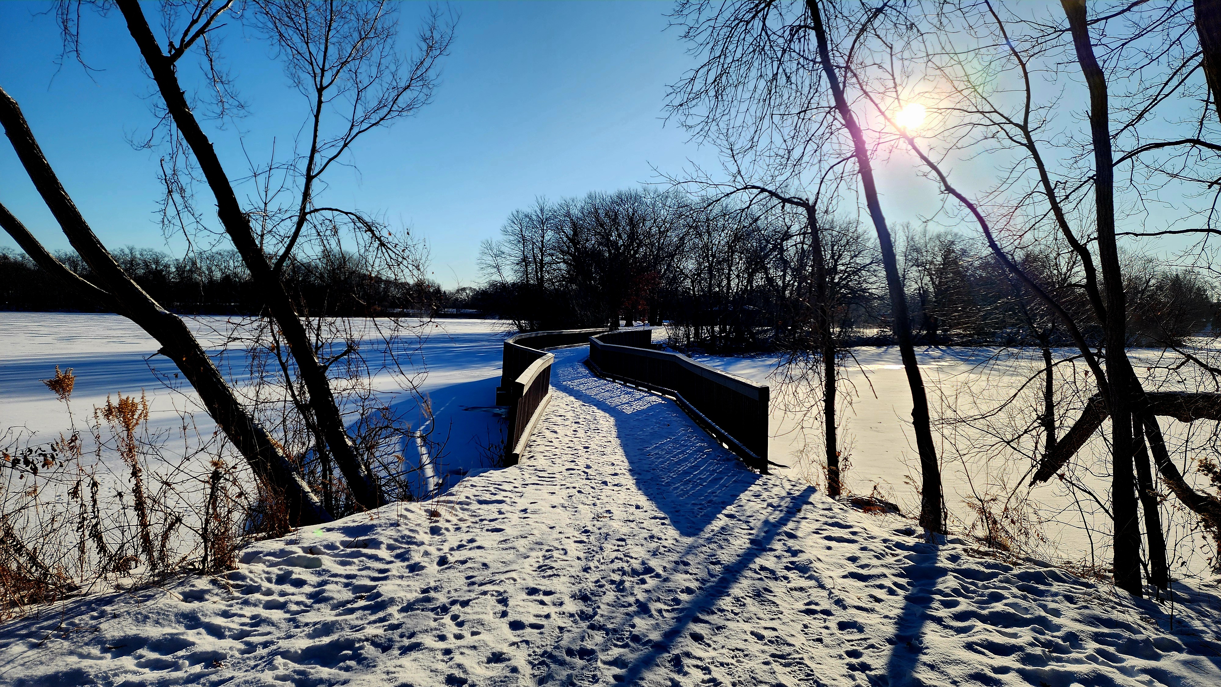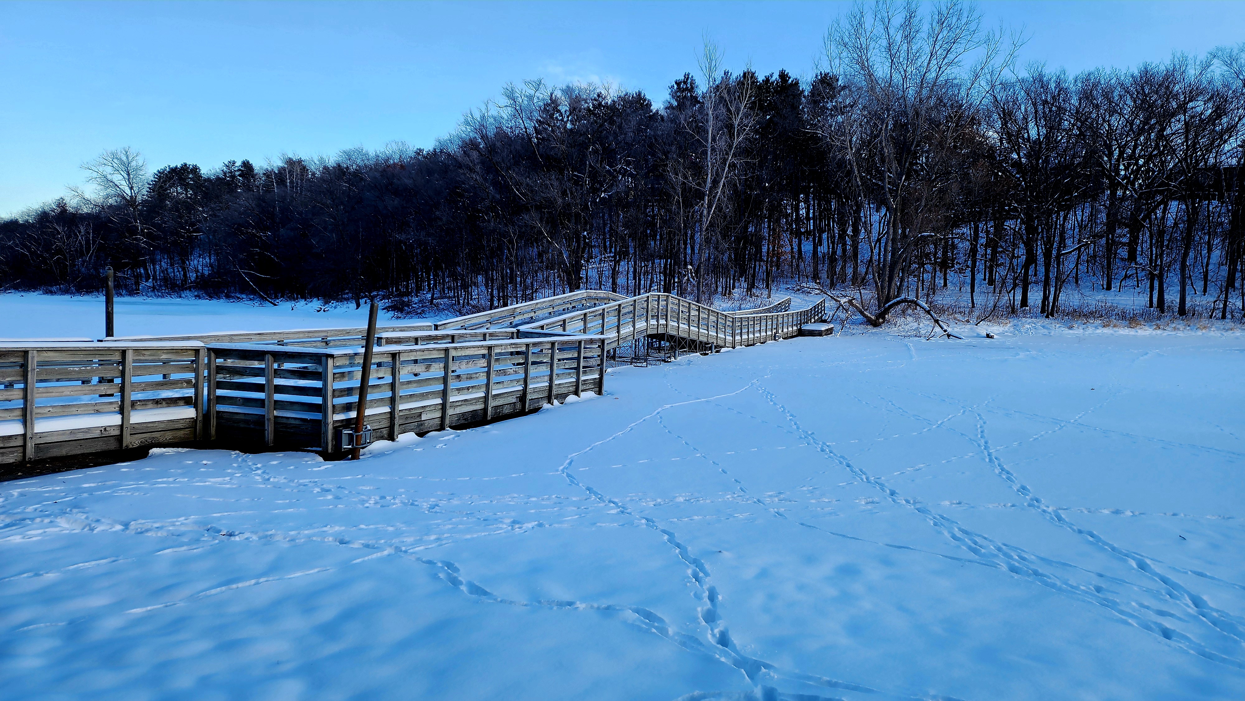A large wooden bridge allowed us to cross Silver Lake to the nearby island. We looped around the island.
