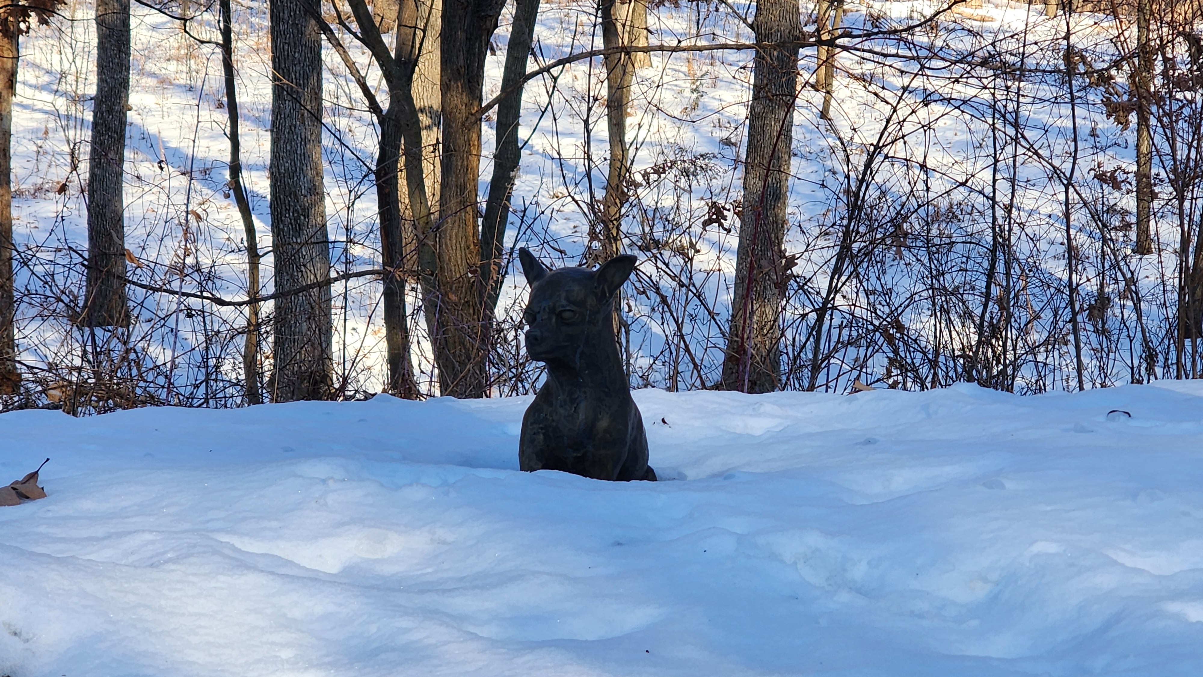 As we rounded the corner, a tiny dog appeared out of the corner of my eye. As I was getting ready to run towards it, I thought for sure it was frozen solid. Thankfully, it was a metal dog. Jokes, people got jokes!