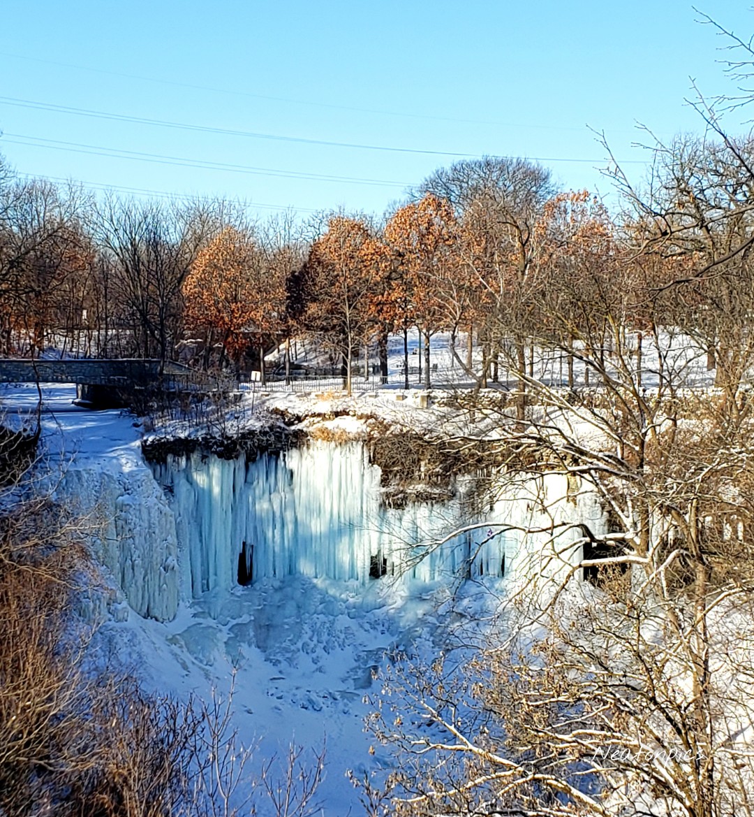 Minnehaha Falls in the winter is breathtaking. The water appears frozen in time enabling it to capture different shades of blue. It was eerily quiet as we walked around the falls.