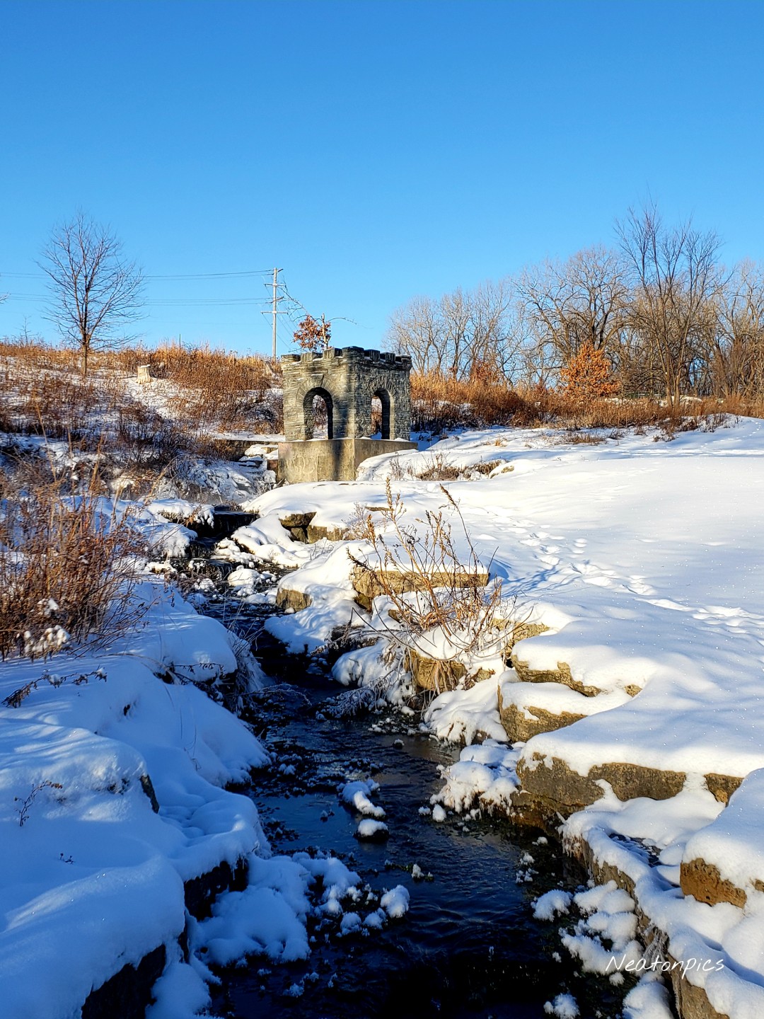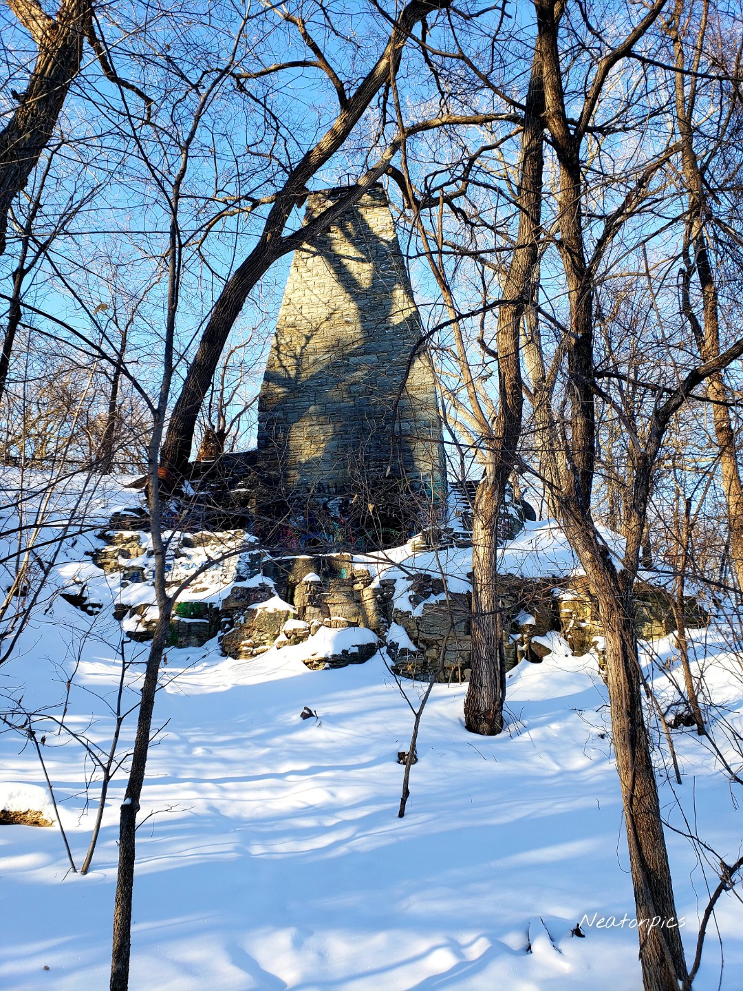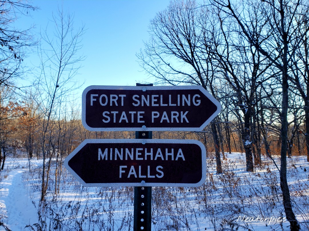 With the sun shinning brightly and the temperature a chilly four degrees, today was meant for a wintery hiking adventure. The cloudless sky was as blue as the ocean. Our adventure started at Fort Snelling State Park by the Thomas C. Savage Visitor Center. Several inches of fresh snow covered the trails. With the Mississippi River to our right, we hiked the trail heading towards the Minnehaha Falls which led us to several beautiful sites.