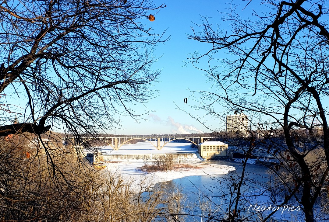 The trail led us to a wooden bridge. We watched as the Minnehaha Creek emptied into the Mississippi River.