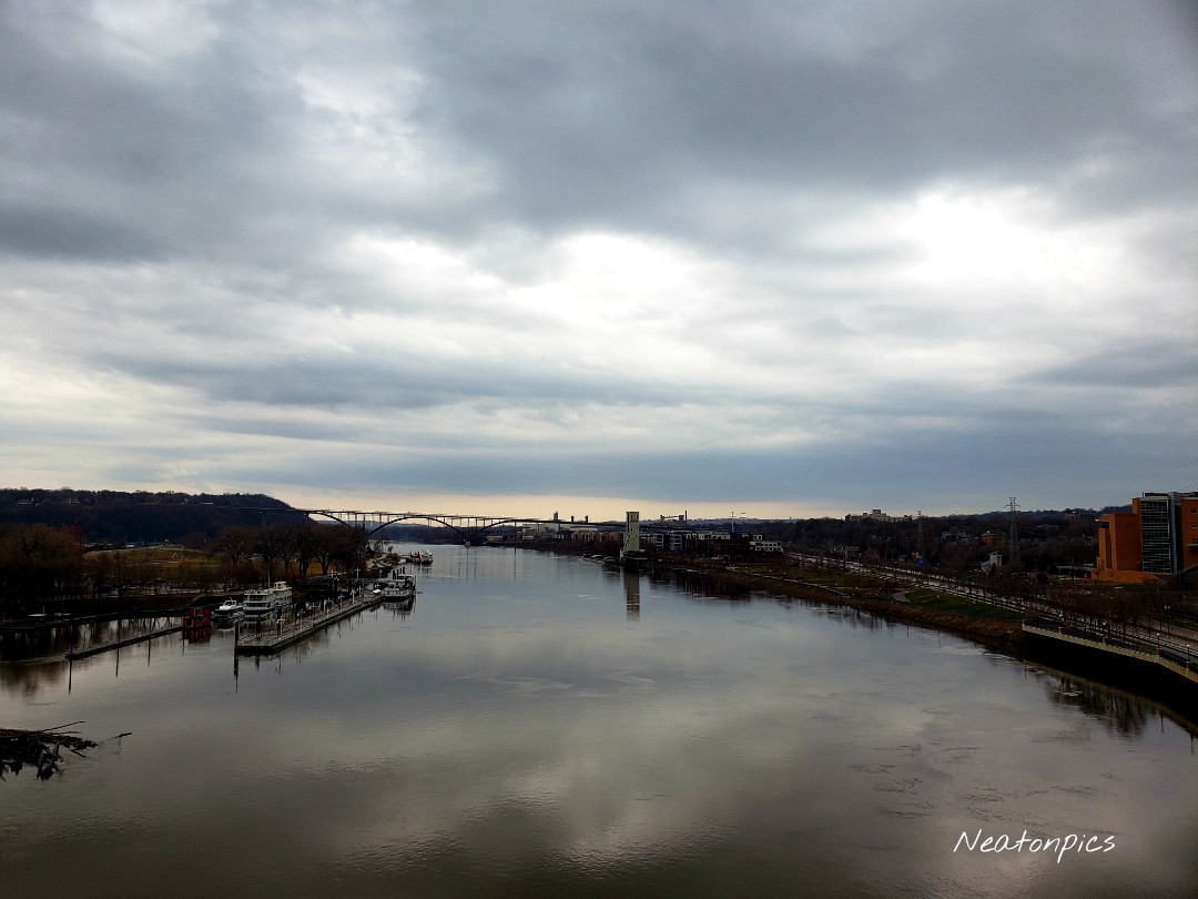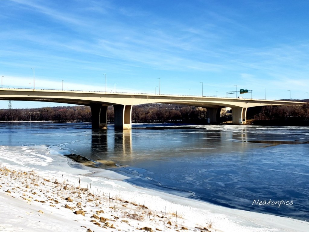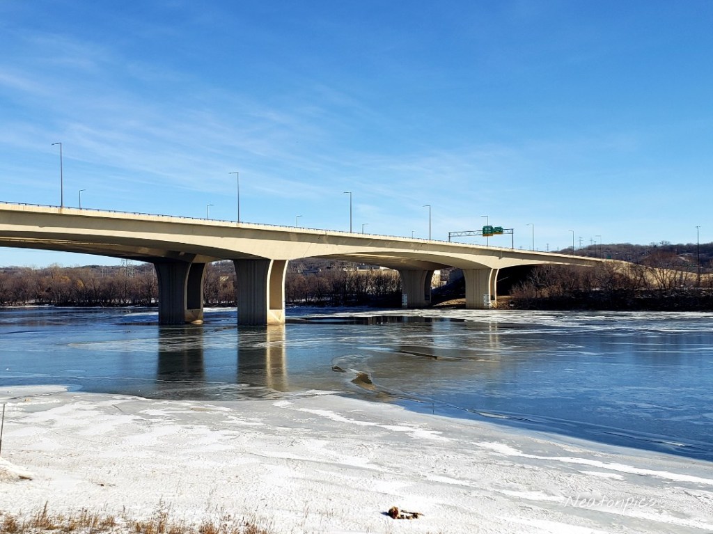 The Wakota Bridge/494 Bridge appeared in the distance stretching across the Mississippi River.