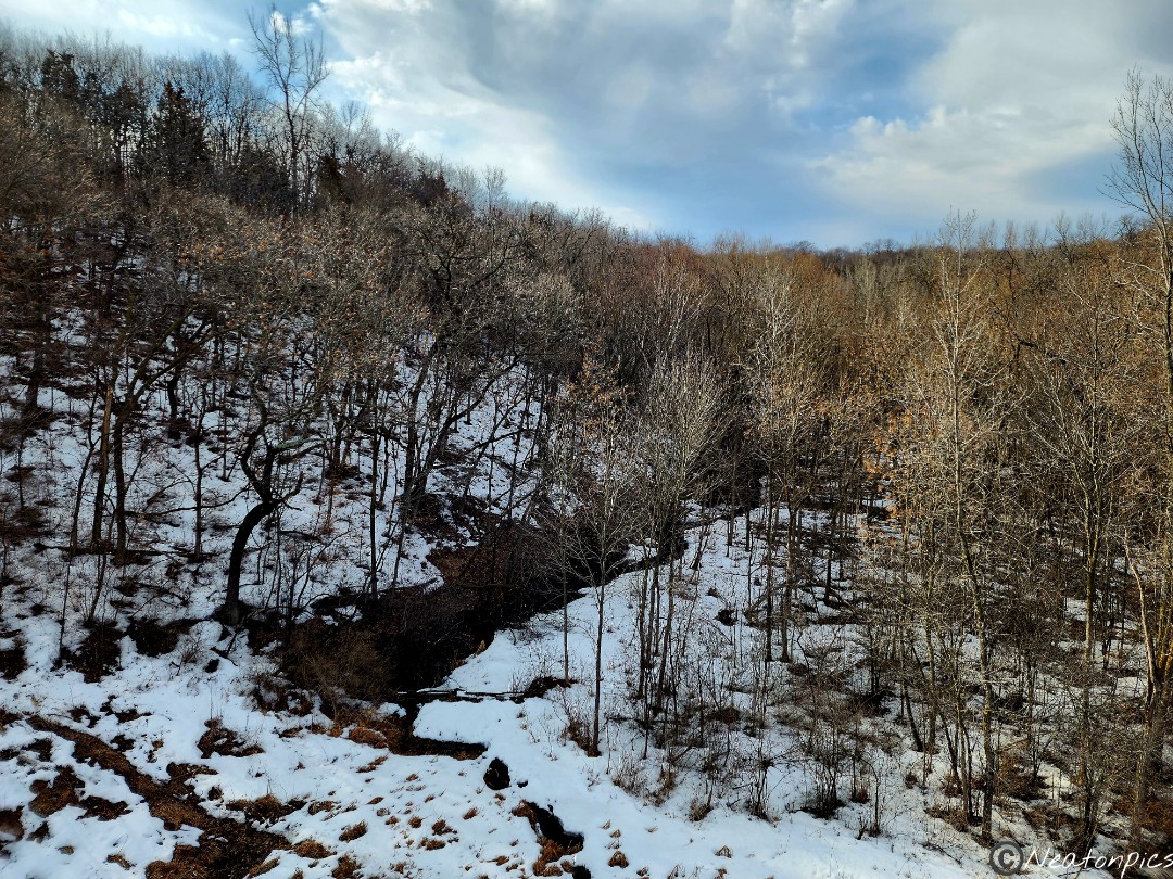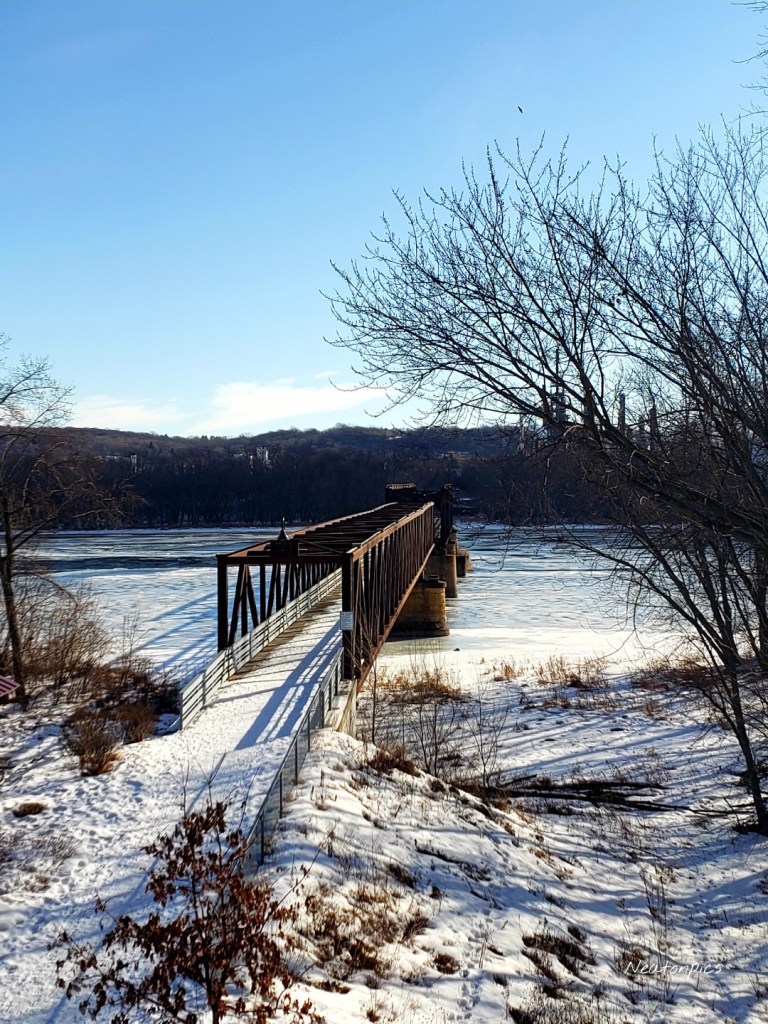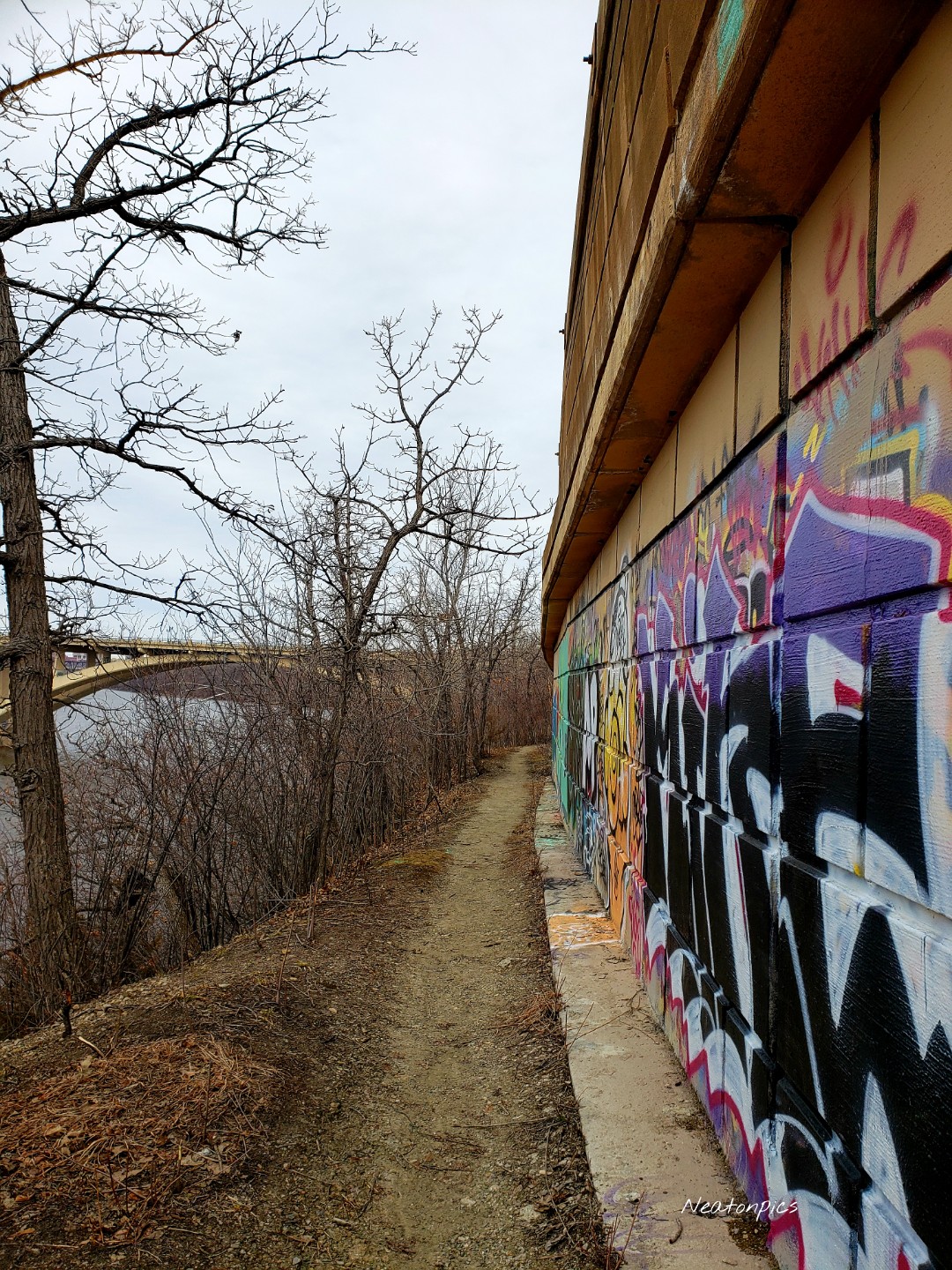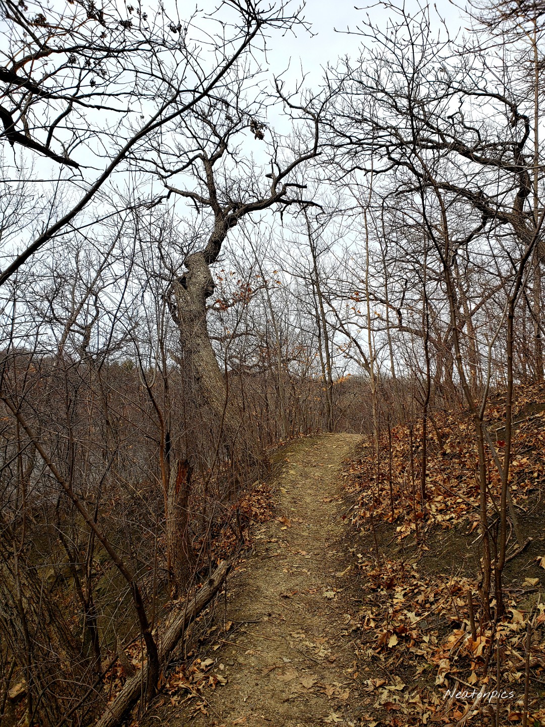 Getting to the trails along the river is a bit tricky in the winter. The park closes off the staircases leading down to the trails. We jumped over their “suggested closure” and carried on with our hike.