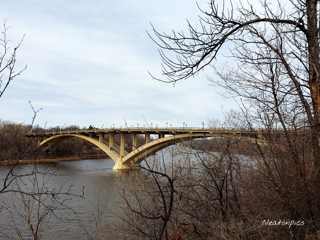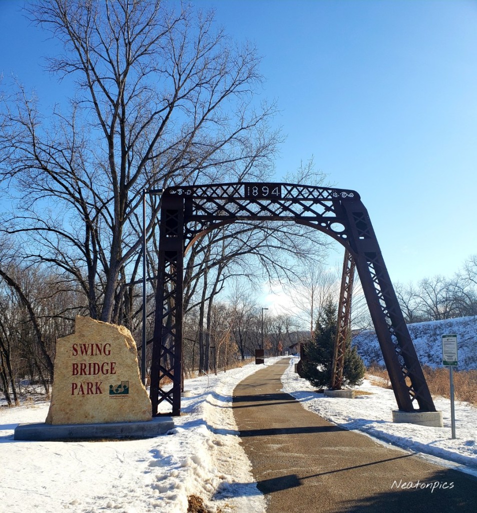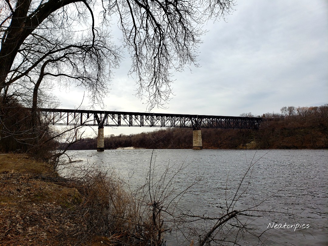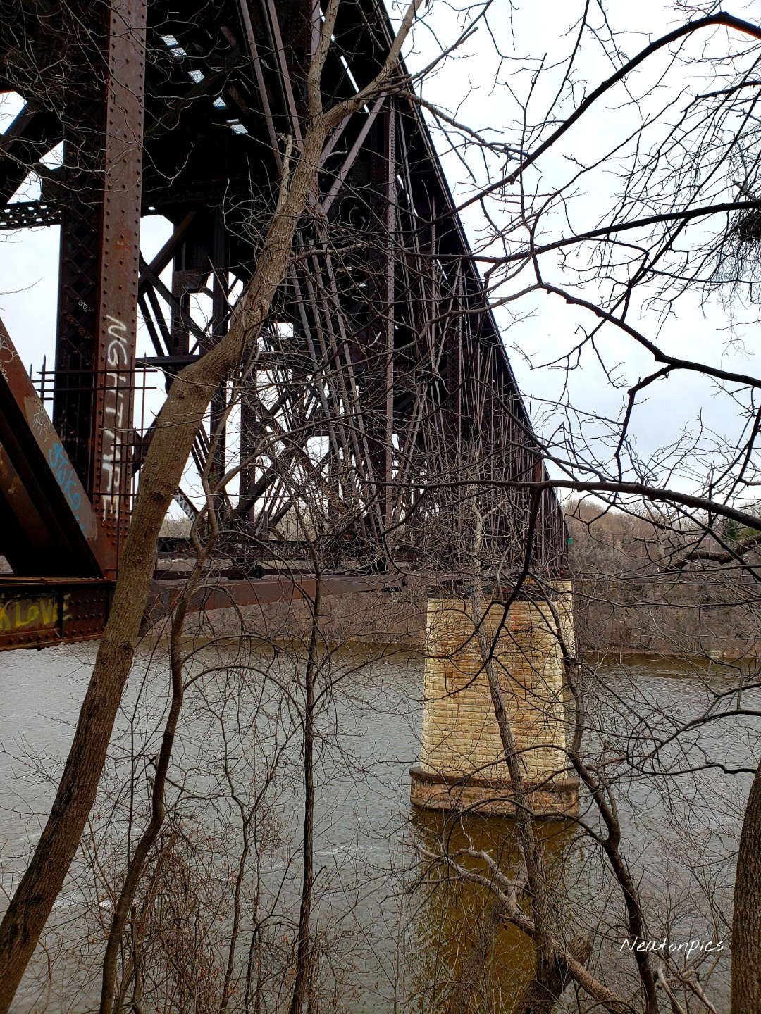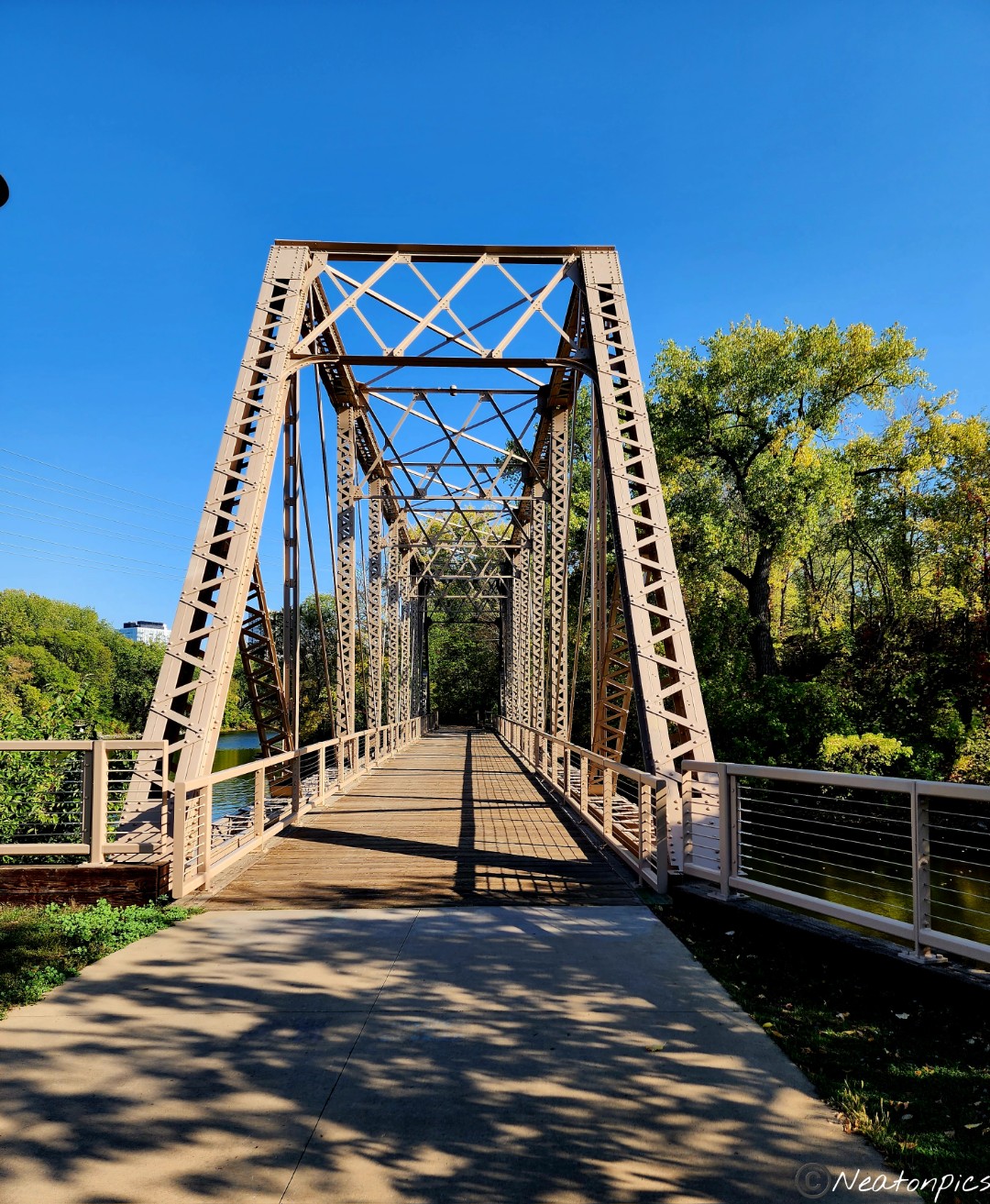 The trail crosses under the Steel Bridge also known as the Minnesota Veterans Home Bridge.