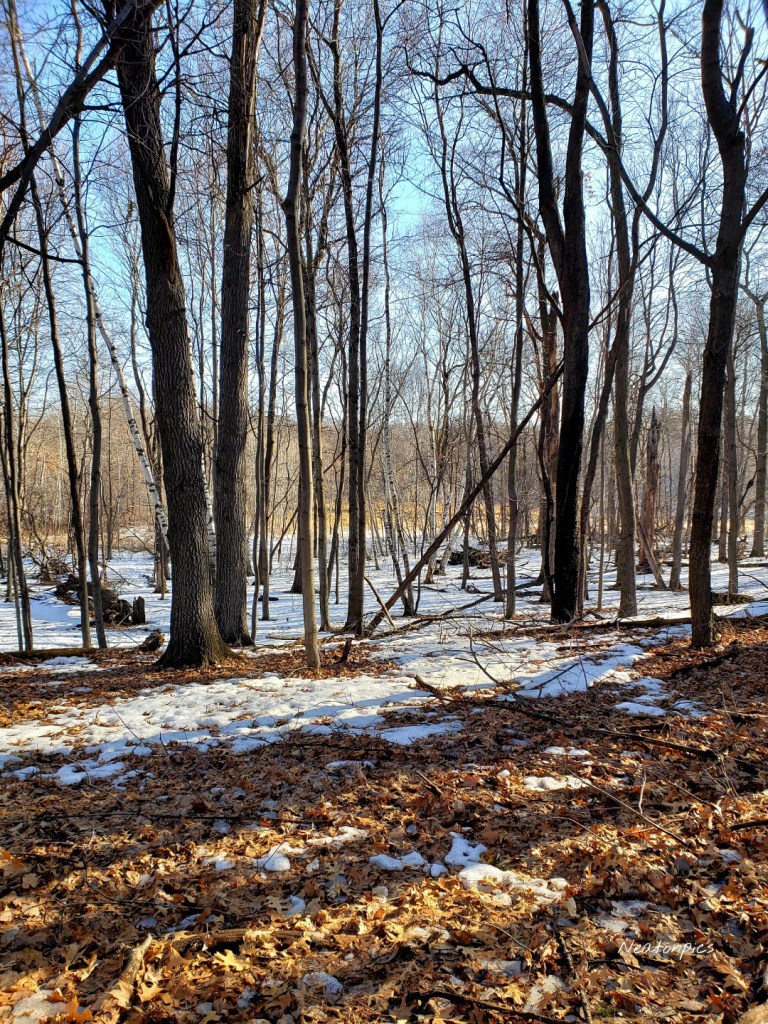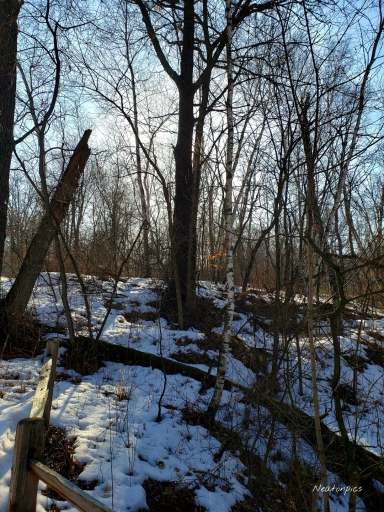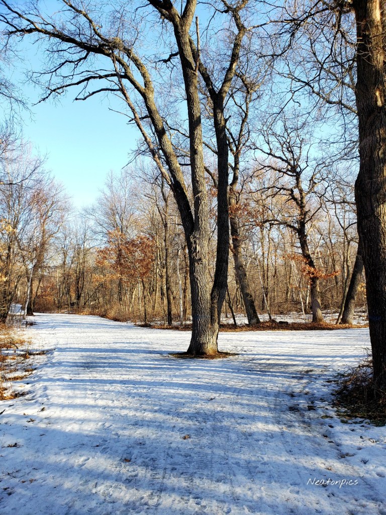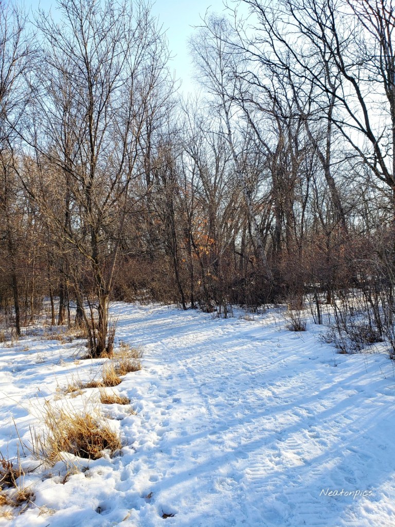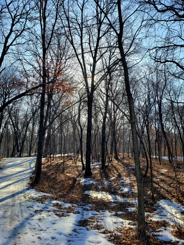We began our hiking adventure at Woodland Trails Regional Park. The sun was shining brightly down on us as we ventured out on the trails. A thin layer of ice coated the trails making for a slippery start to the day. Our first trail was the Prairie Loop due to it being mostly clear of snow and ice.