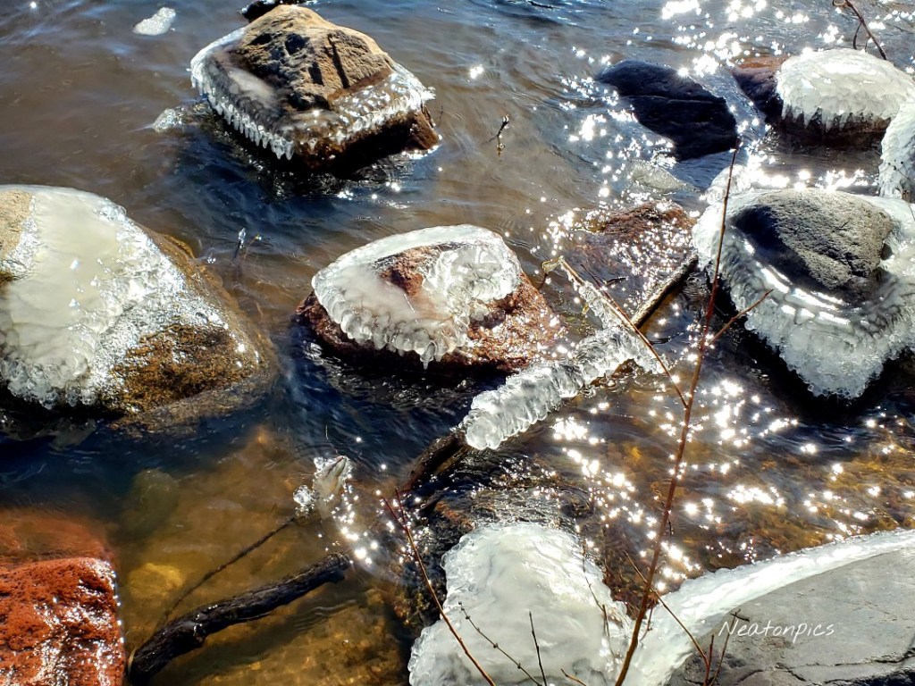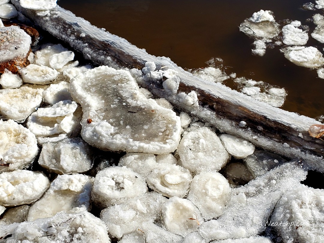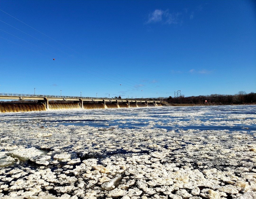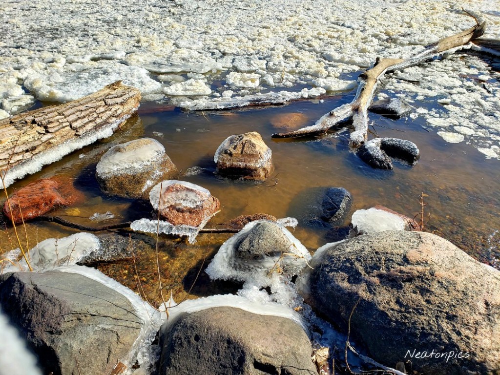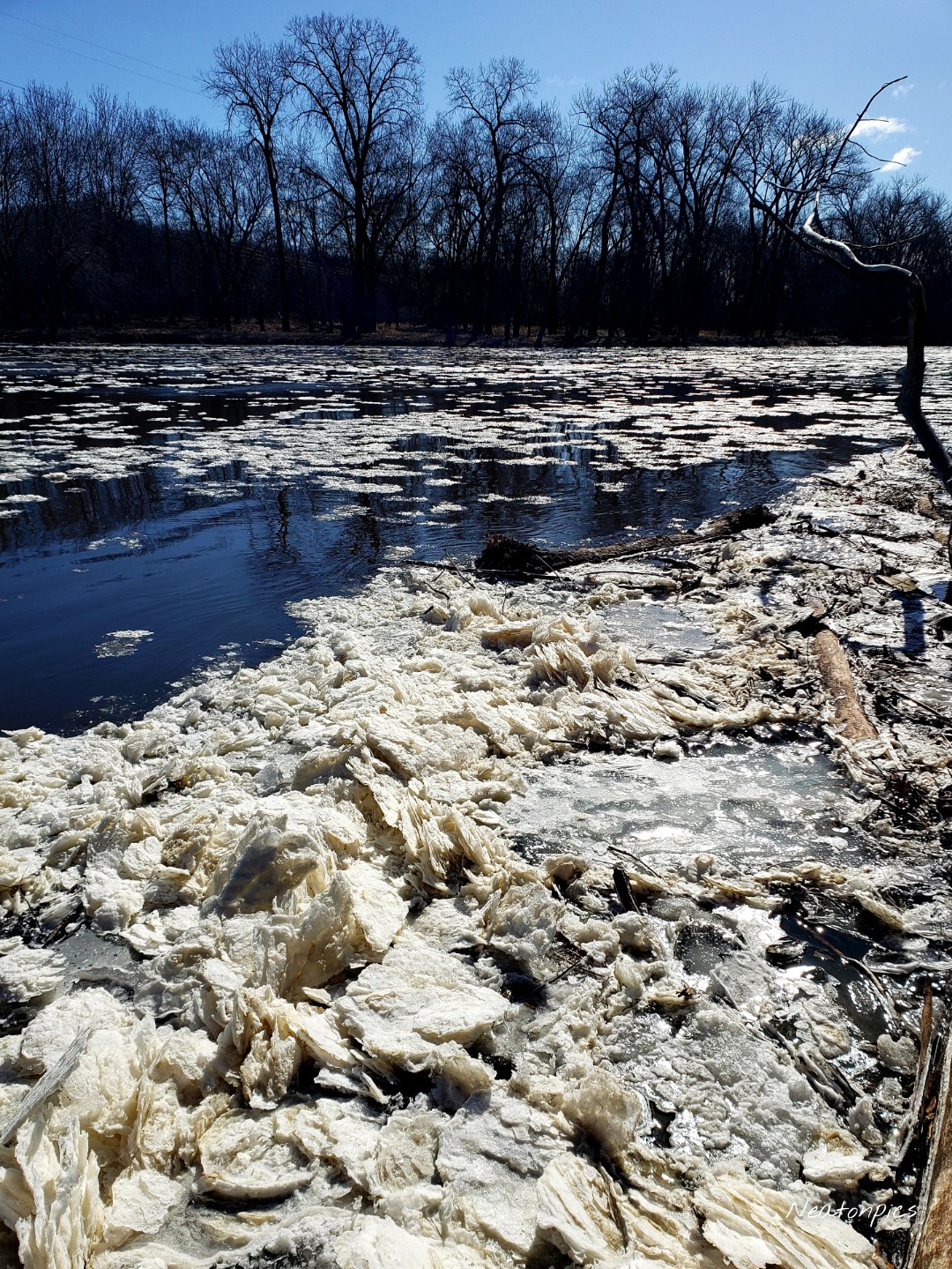We crossed back over the dam and continued our hike on the river trail. The ice gathering along the side of the river was amazing to see.
