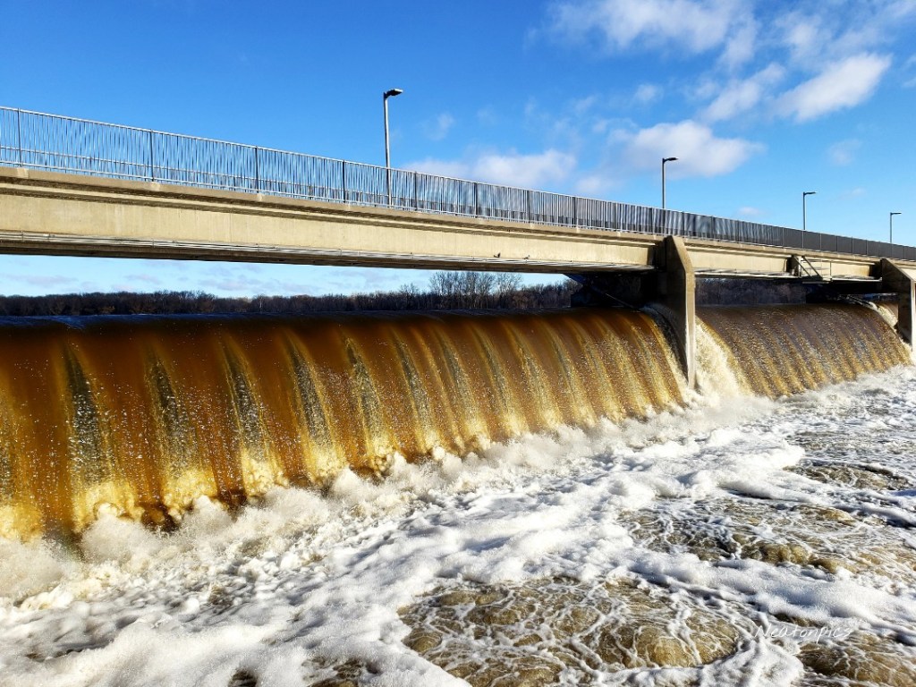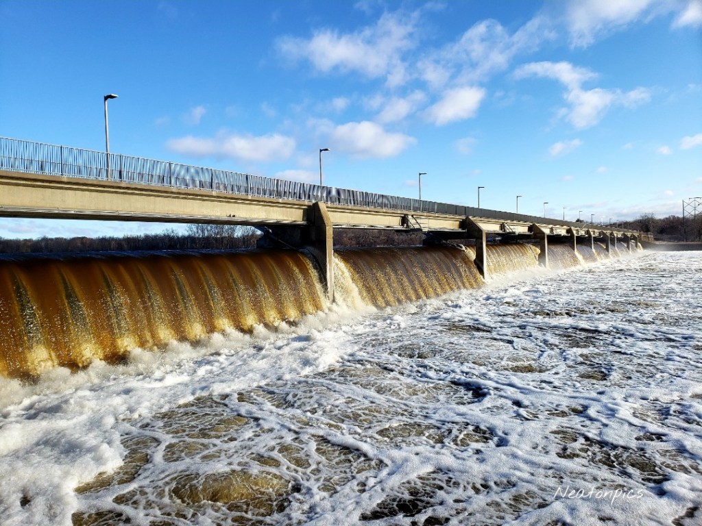 I always enjoy walking across the dam. One side of the bridge, the Mississippi River is smooth as glass and on the other side the water is thrashing through the dam.