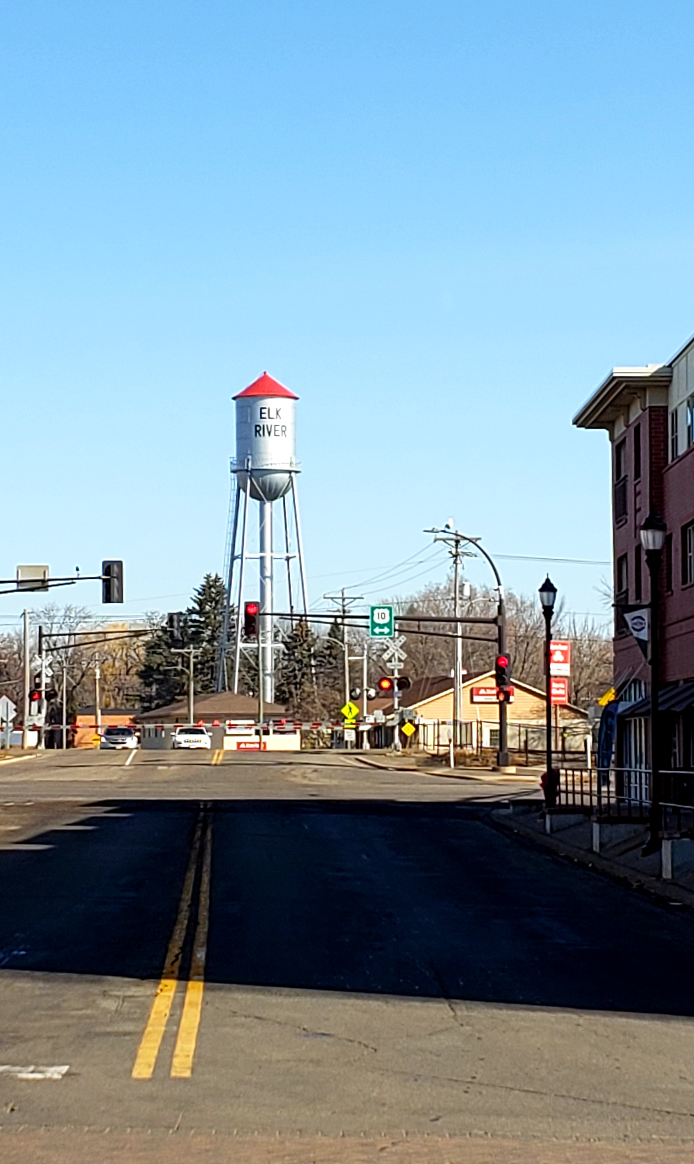 After a few side road detours, we hiked into the Historic Downtown Elk River. Downtown offered beautiful views of the Mississippi River and their cool water tower.