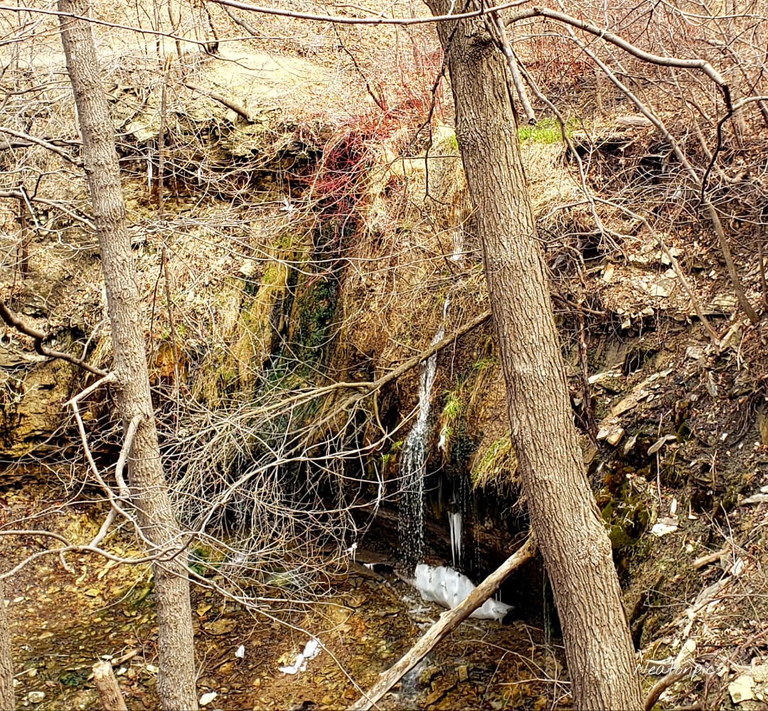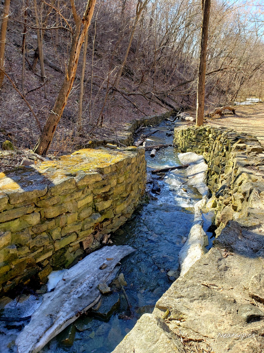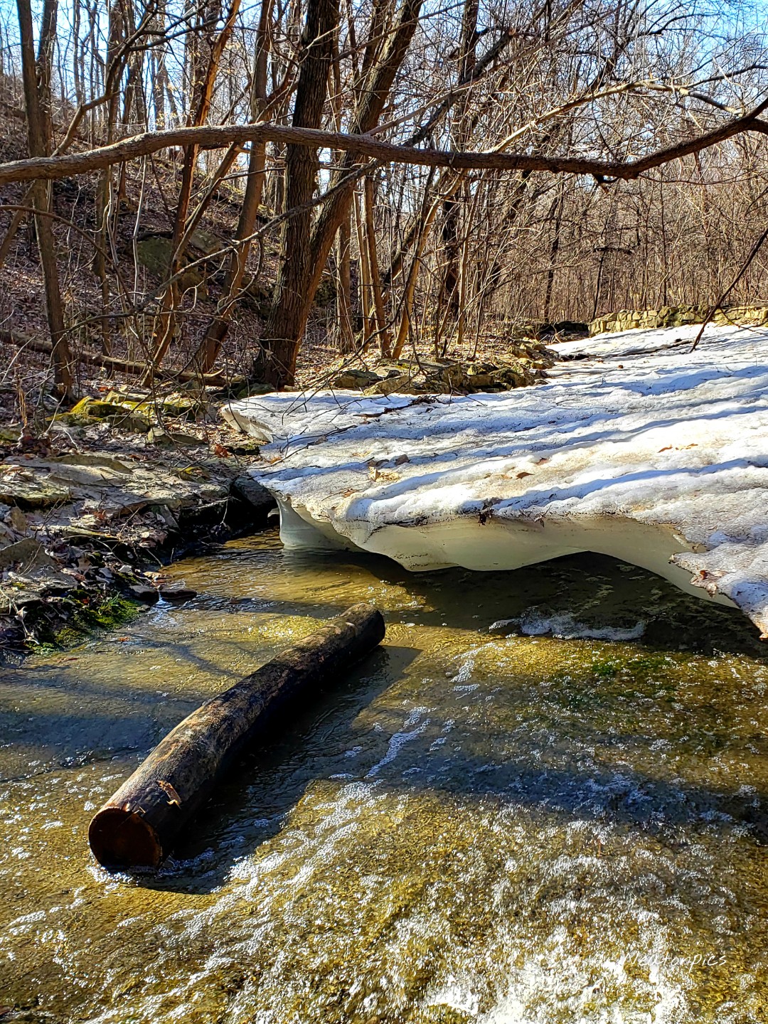 Hidden Falls Creek flows into the Mississippi River. Parts of the creek were still covered in a thick sheet of ice.
