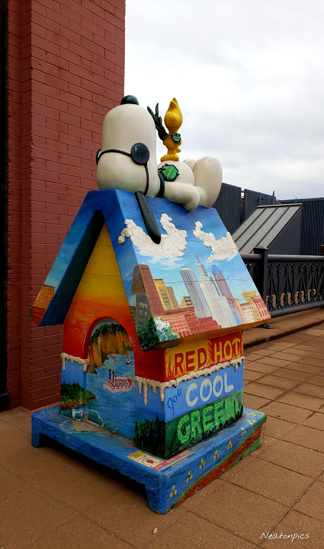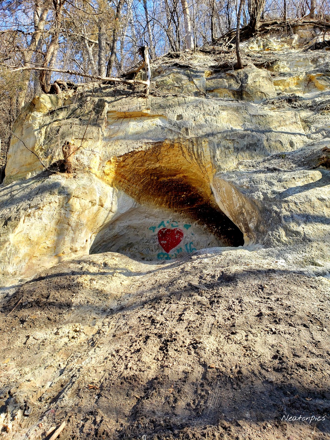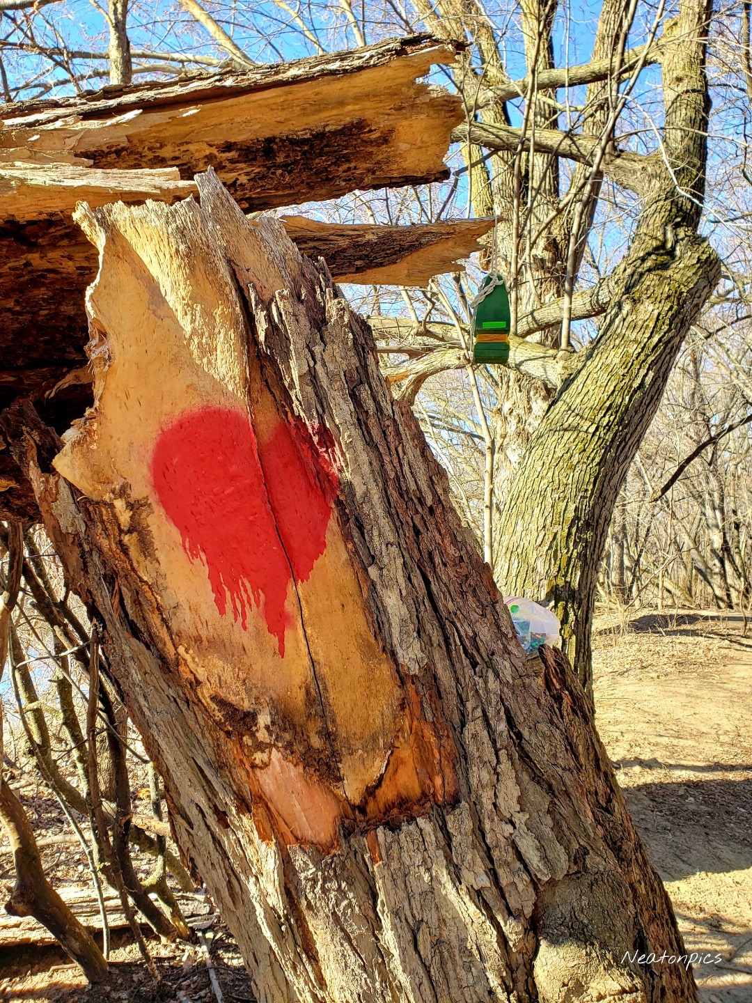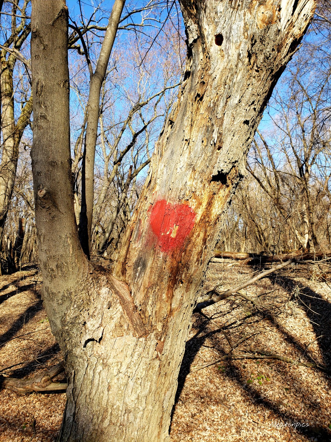 The Mississippi River trail offered beautiful views of the river. We also found several trees and rocks painted with red hearts and other graffiti along the river trail.