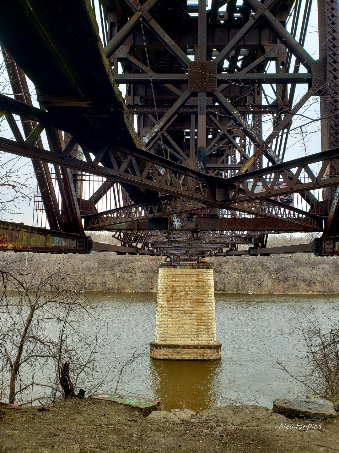 We jumped back on the Winchell Trail after crossing the Franklin Bridge. We were able to hike under the Short Line Bridge which allowed us a close view of the giant metal pieces it was constructed from.