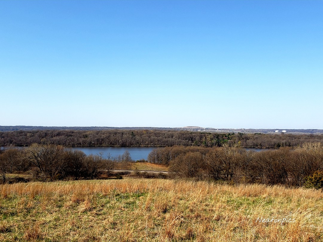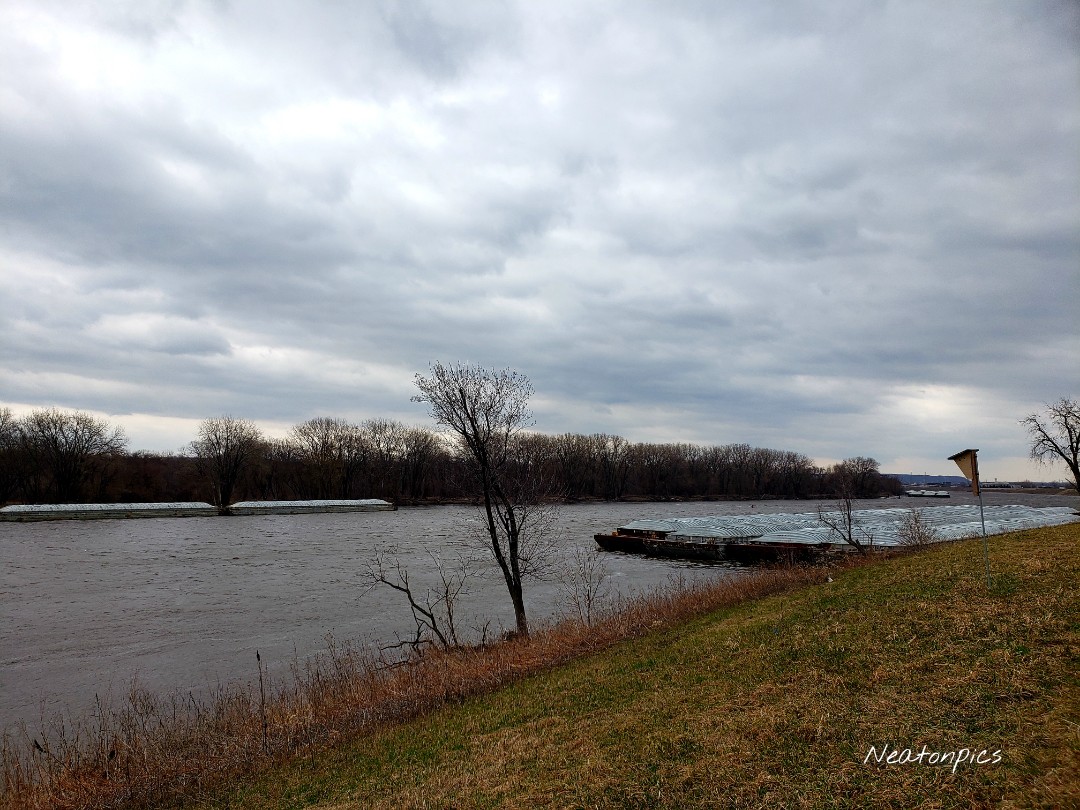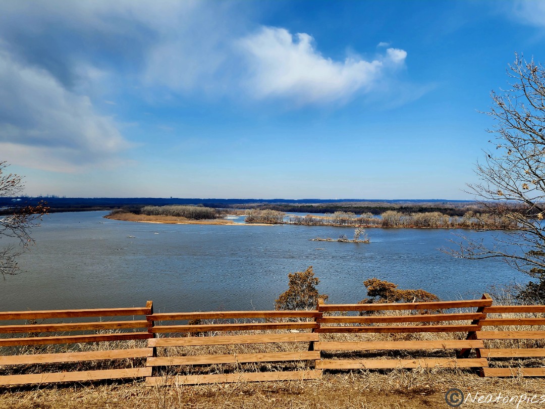 We reached Schaar’s Bluff. Thankfully, their Gathering Center was open. After looking around the center, back outside we went to take in another view of the Mississippi River.