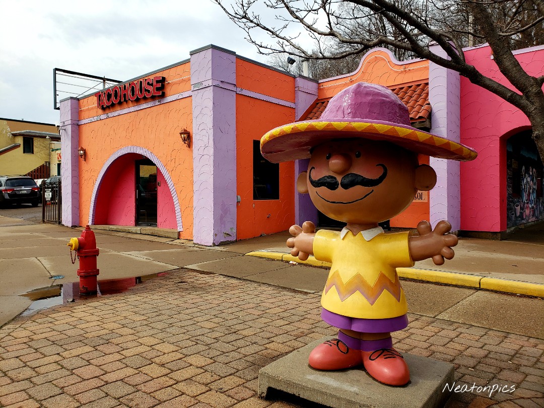 Tacos for the midday snack! Charlie Brown greeted us as we walked towards the entrance.