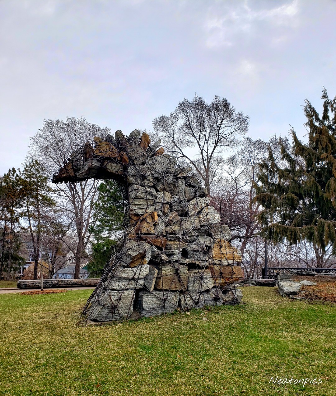 We continued our hiking adventure down Cesar Chavez Street until we reached the Robert Piram Regional Trail. Once back at Kaposia Landing we crossed the bridge over the railroad tracks to see Simon’s Ravine Trailhead. We decided to tackle that trailhead another day. They have a beautiful sculpture at the Simon’s Ravine trailhead.