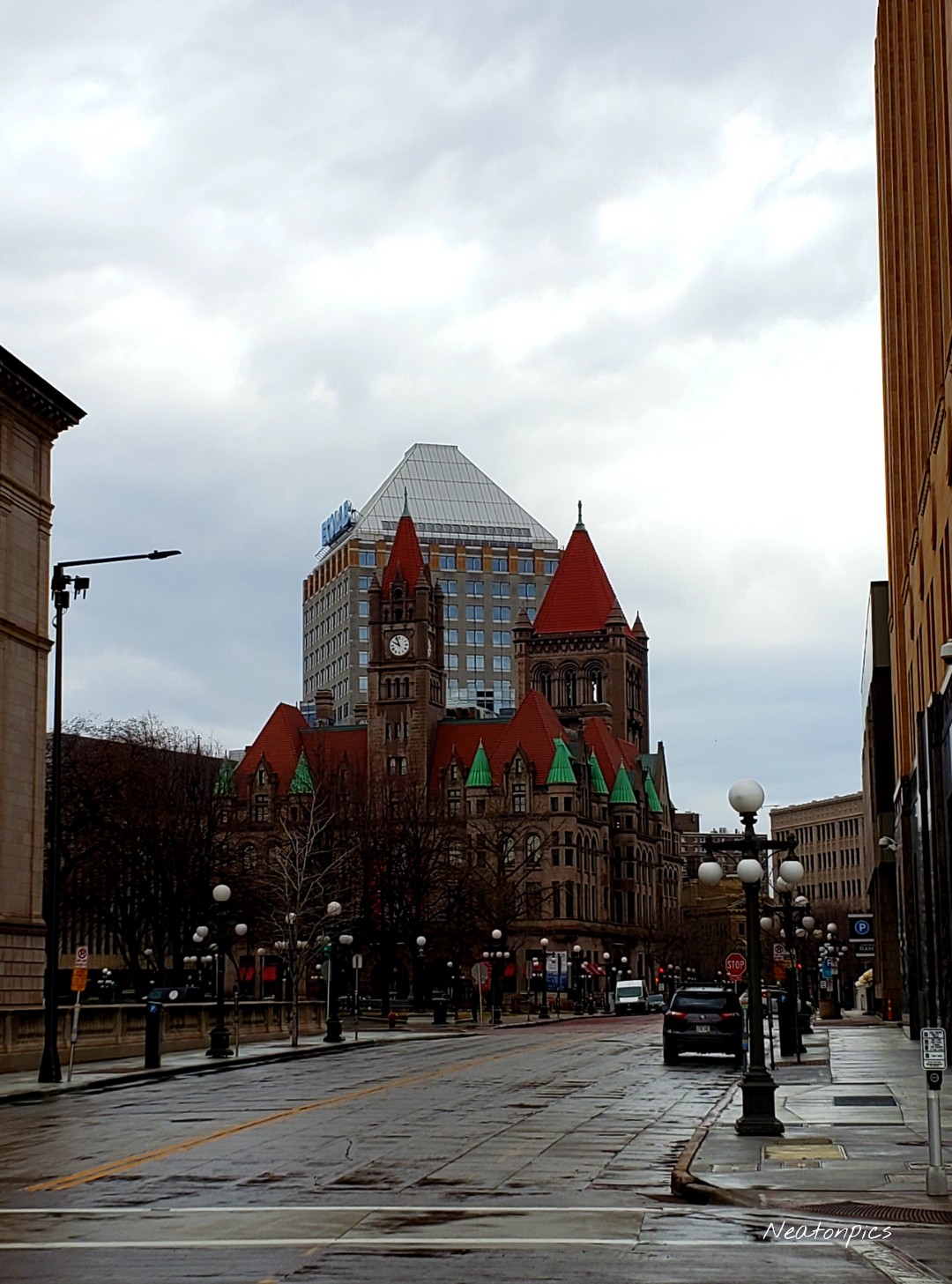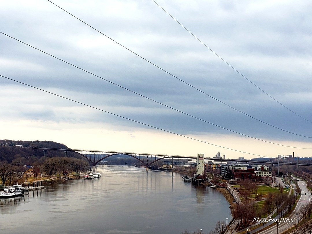 We crossed the Wabasha Street Bridge into downtown St. Paul. Smith Avenue High Bridge can be seen in the distance.