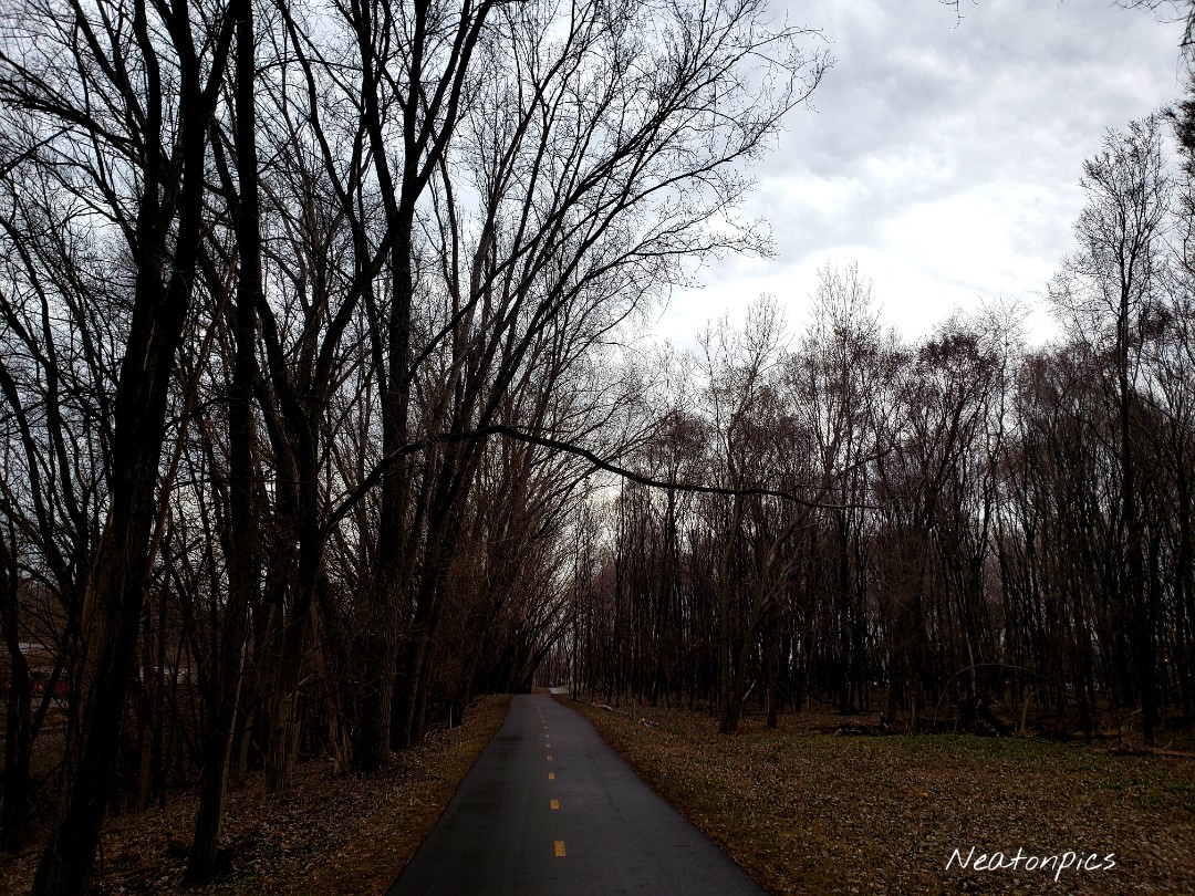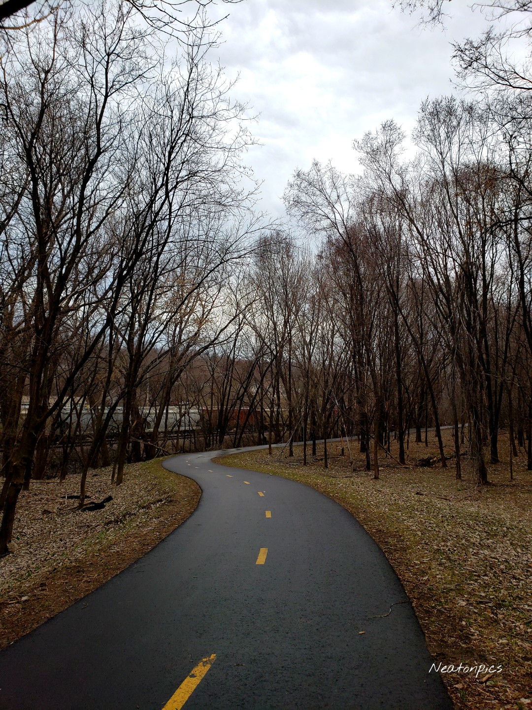 Early morning hikes are getting a bit chilly in Minnesota, especially today, with the clouds overhead and at times light rain drizzling down. Hiking a paved trail was the way to go today.