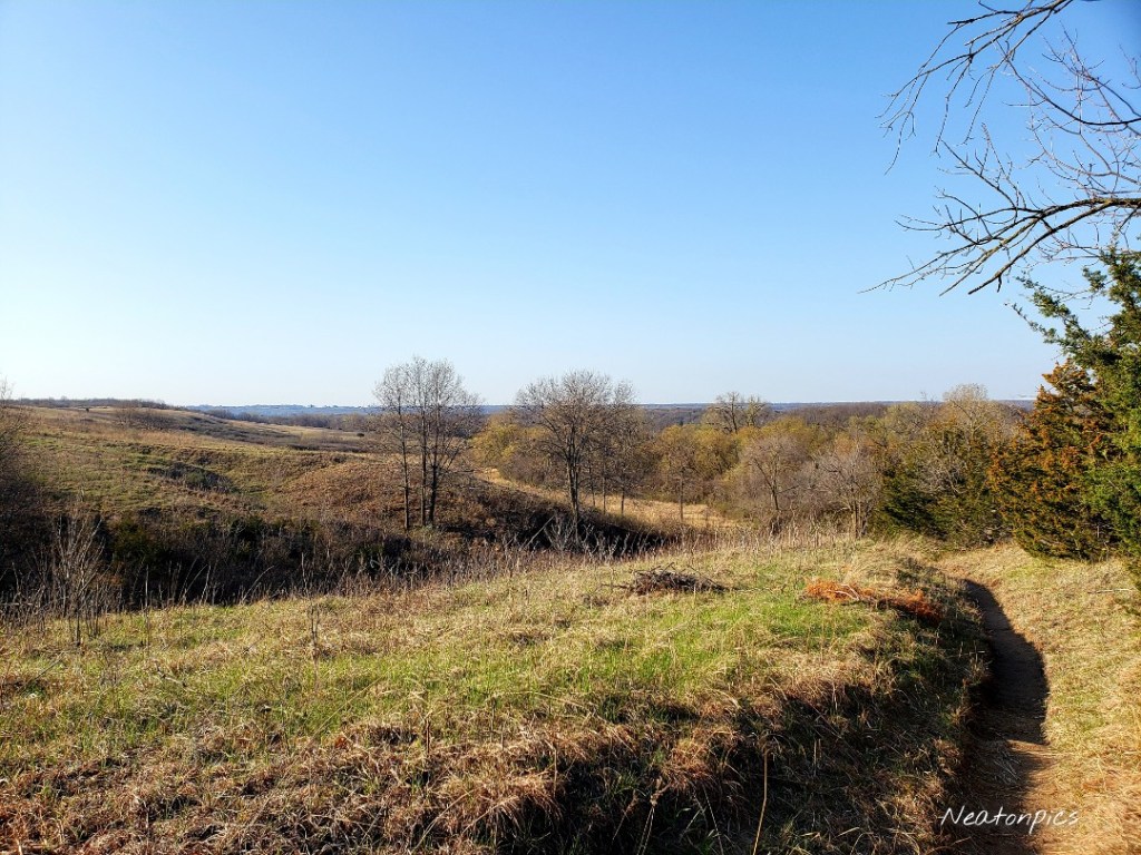 The park has recently added bison to the land. We were excited to catch a glimpse of them as we hiked by. Unfortunately, the bison were grazing out of sight. We continued on the trail hoping to catch them on the return trip.
