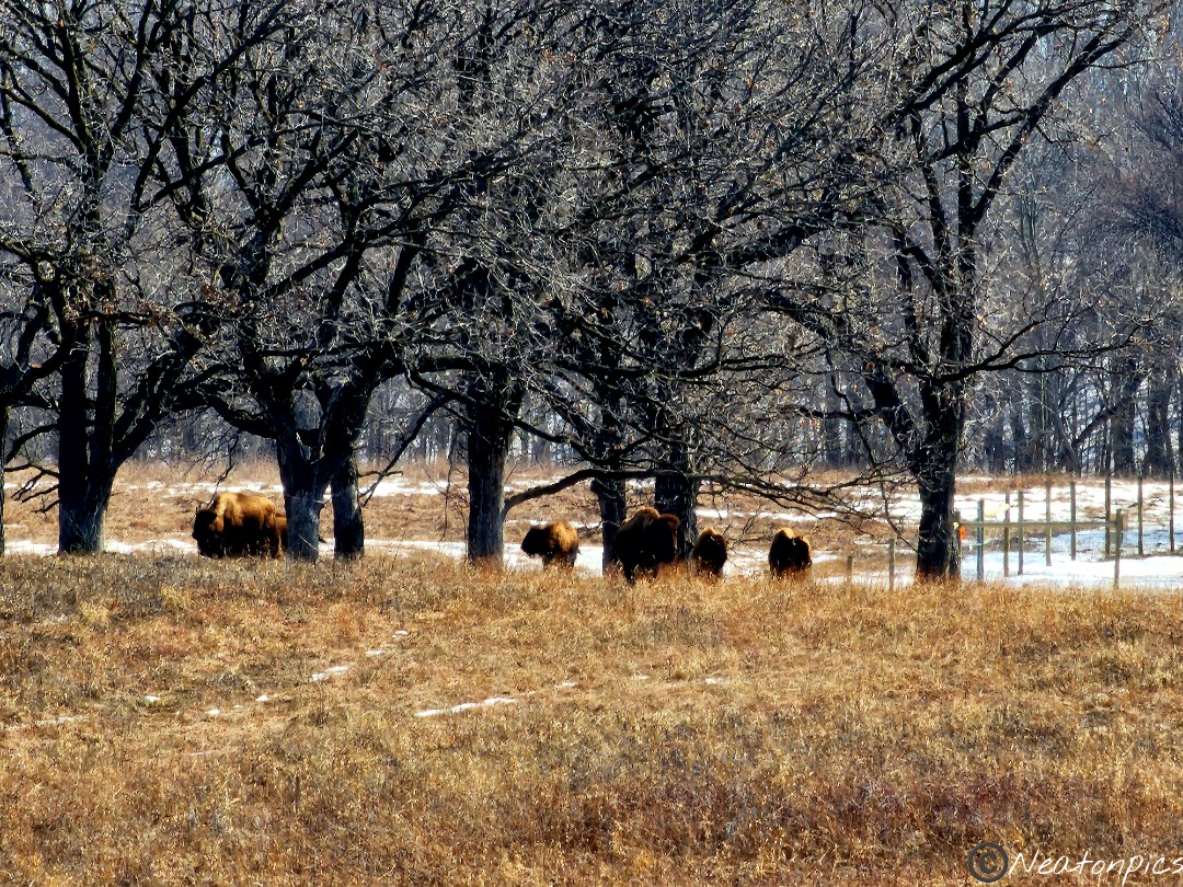 We found them! The bison were out grazing in the far end of the East Paddock. There were about 6 of them.