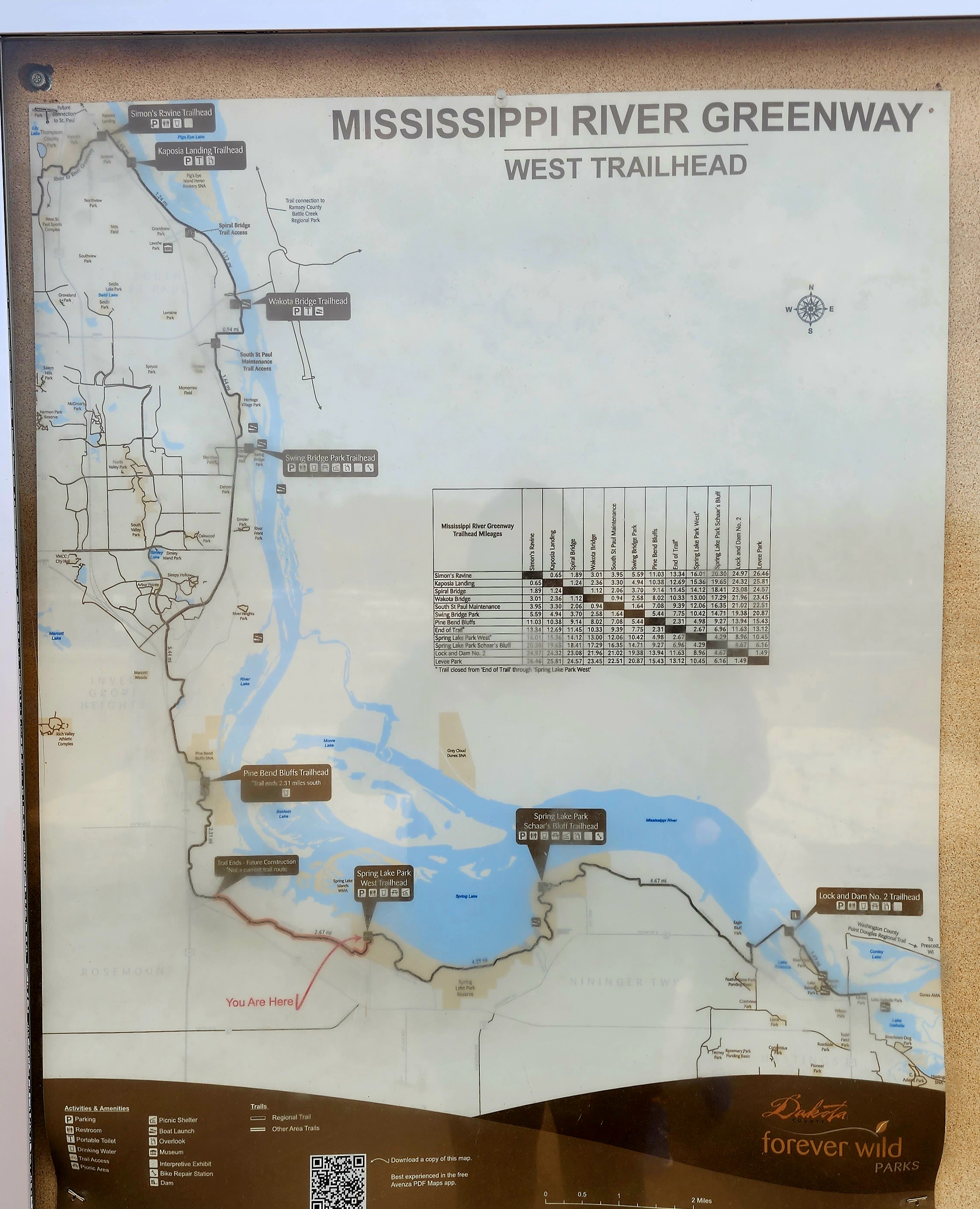 As I began my hike along the Mississippi River Regional Trail, I could hear birds singing, and the trees creaked as the wind blew through them.