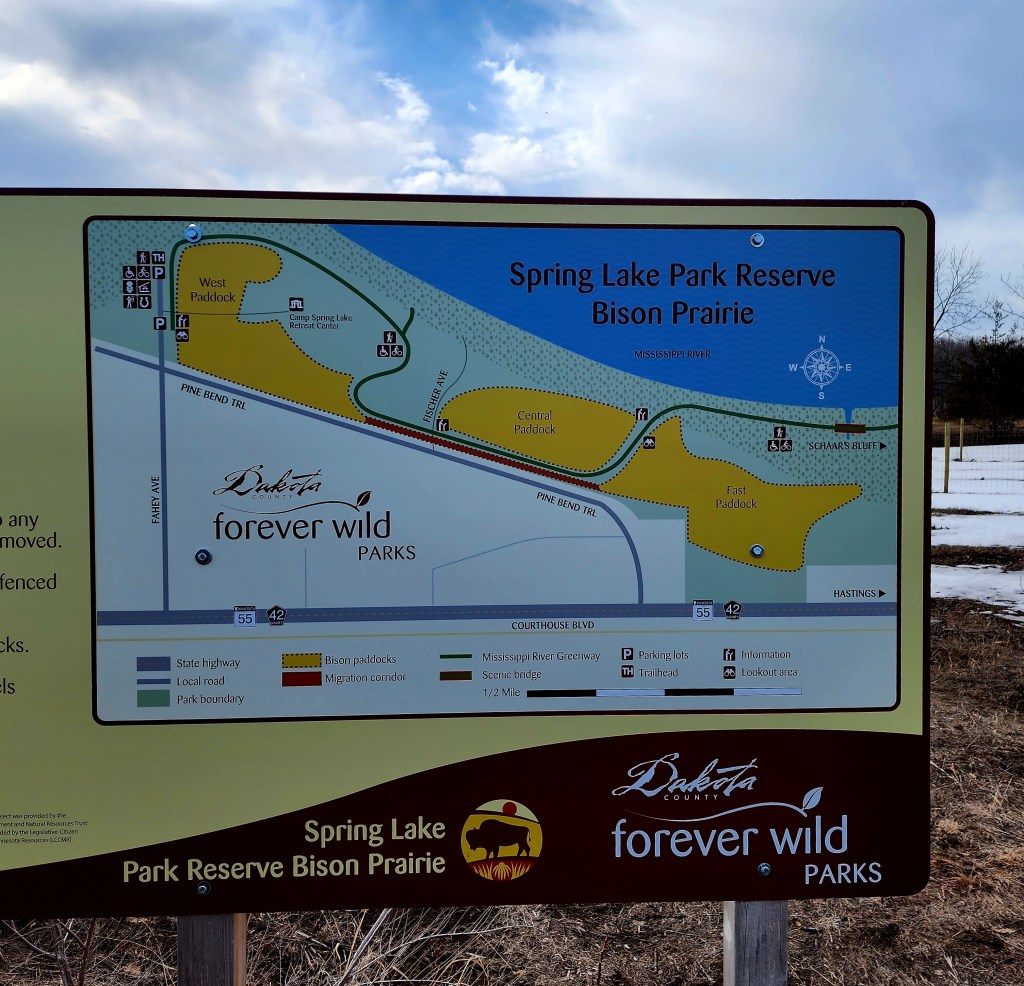 Lock and Dam #2 was closed. After a quick rest we decided to head back to our starting point. As we hiked past an open farm field, we saw at least 24 deer run across it. I’m not sure where they came from or where they were going but WOW! That was a lot of deer. We also saw an owl take off from the ground. As soon as the owl landed, it must have turned its invisibility cloak on because… poof, it was gone. We were happy to have had other animal sightings since we were unable to see the bison, although, we were still hoping to catch a glimpse of them.
