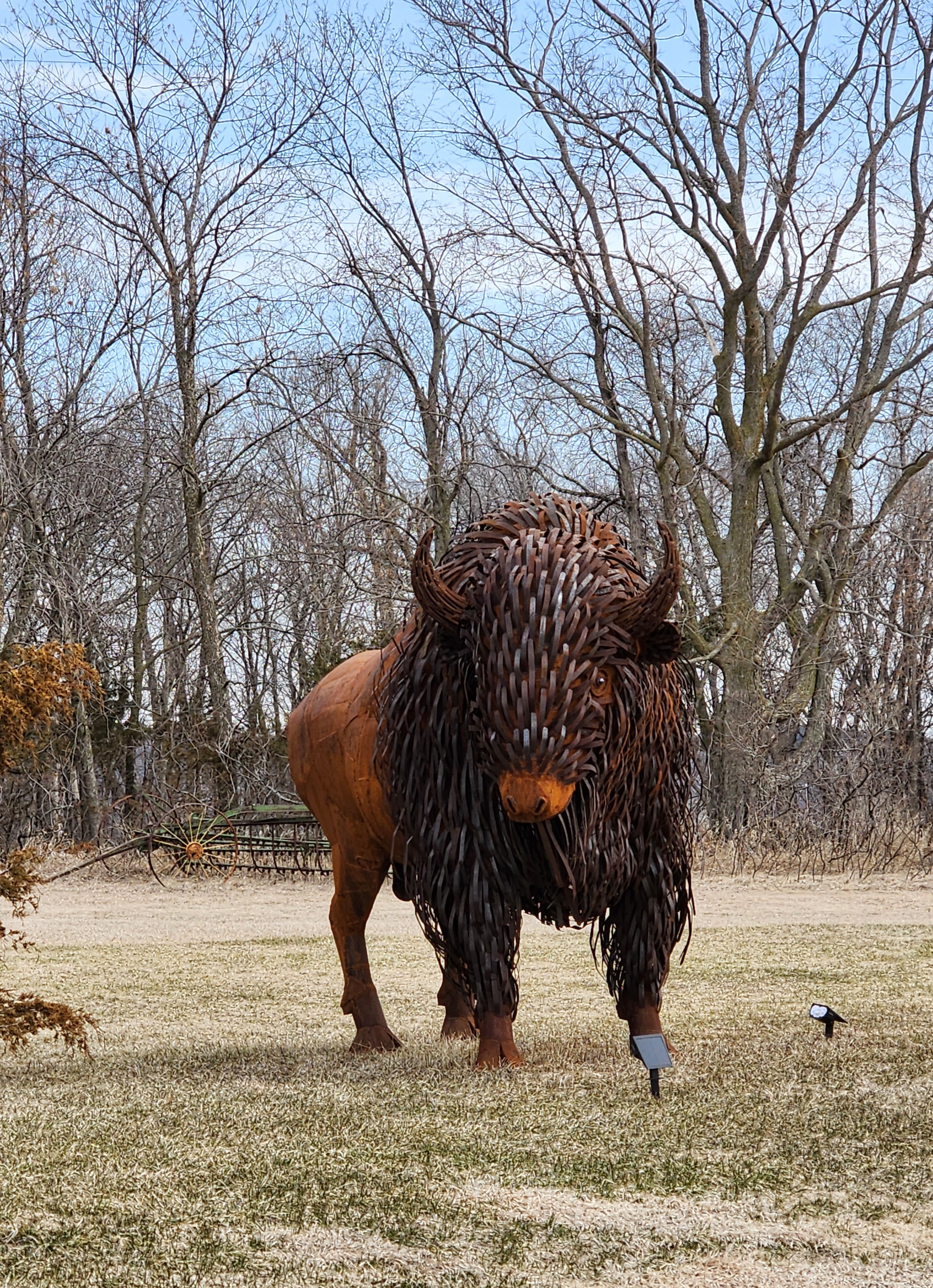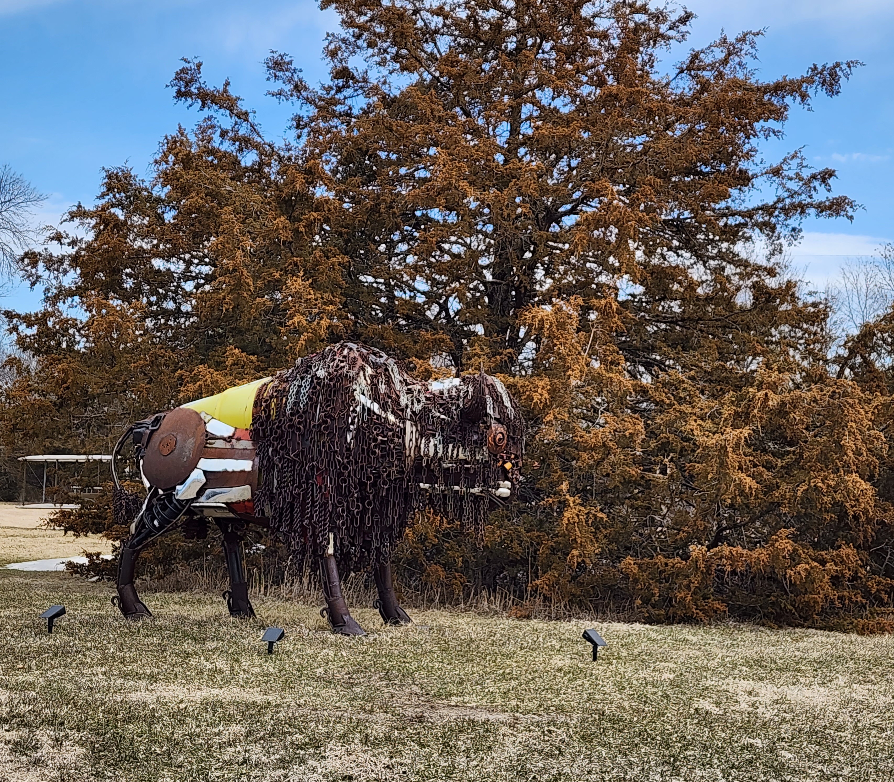 Our plan was to turn around and head back, however, the day was too perfect to end our hike so soon. We carried on to the Lock and Dam #2. The trail led us past someone’s personal art sculptures. I made sure to take pictures of the bison sculptures in case we missed the real ones.