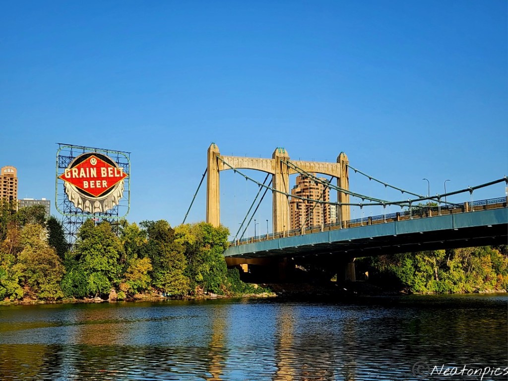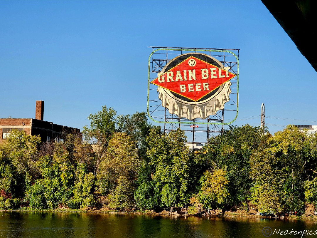Once on the other side of the Mississippi River, we began the loop back to our starting point. The Hennepin Avenue Bridge and the Grain Belt Beer sign are historic sites to see.