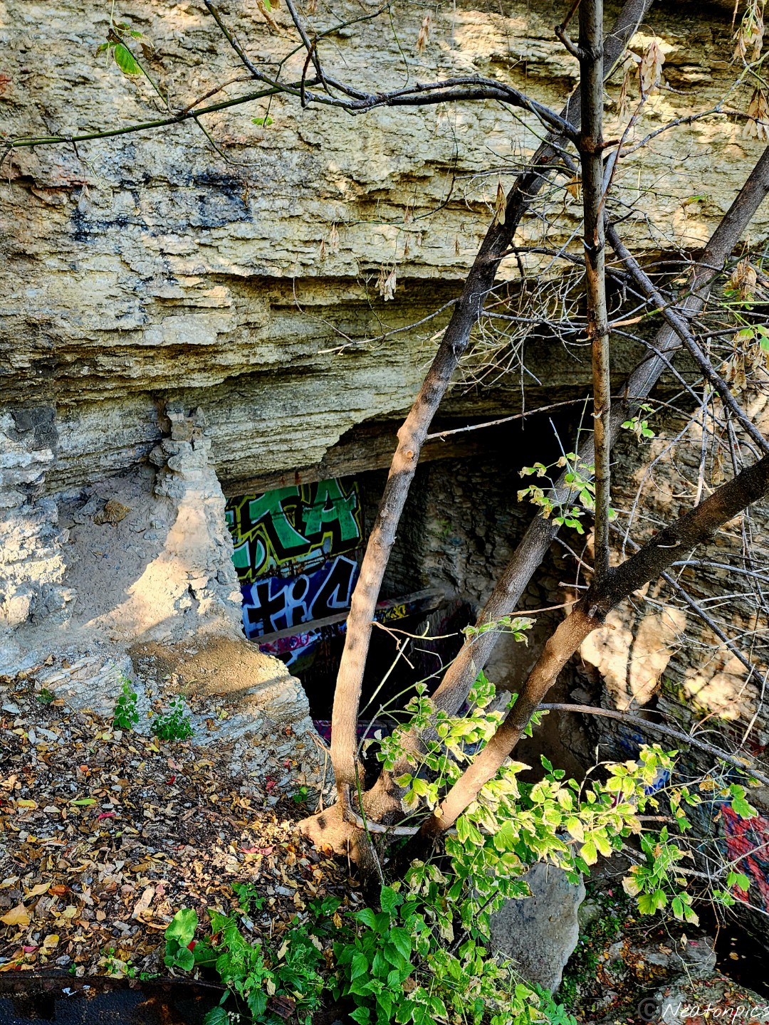 Being an urban explorer offers the advantage of stopping for a snack. We decided to walk down Wabasha Street towards several restaurants. We passed the Wabasha Street Caves. They offer cave tours and host other events. Around the corner from the Wabasha Caves we found a cave entrance that was closed, however, it offered us a peek inside.