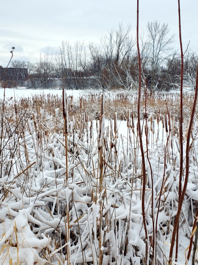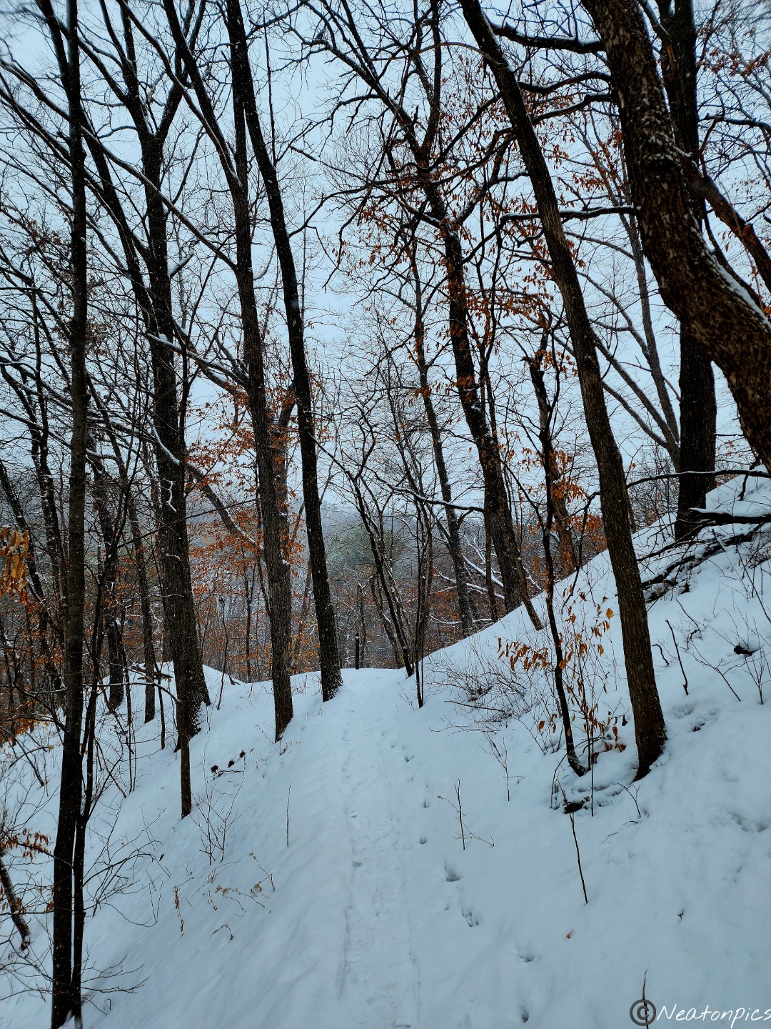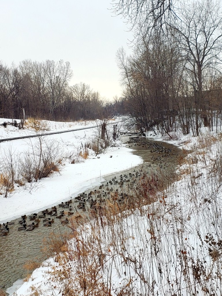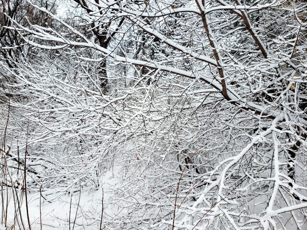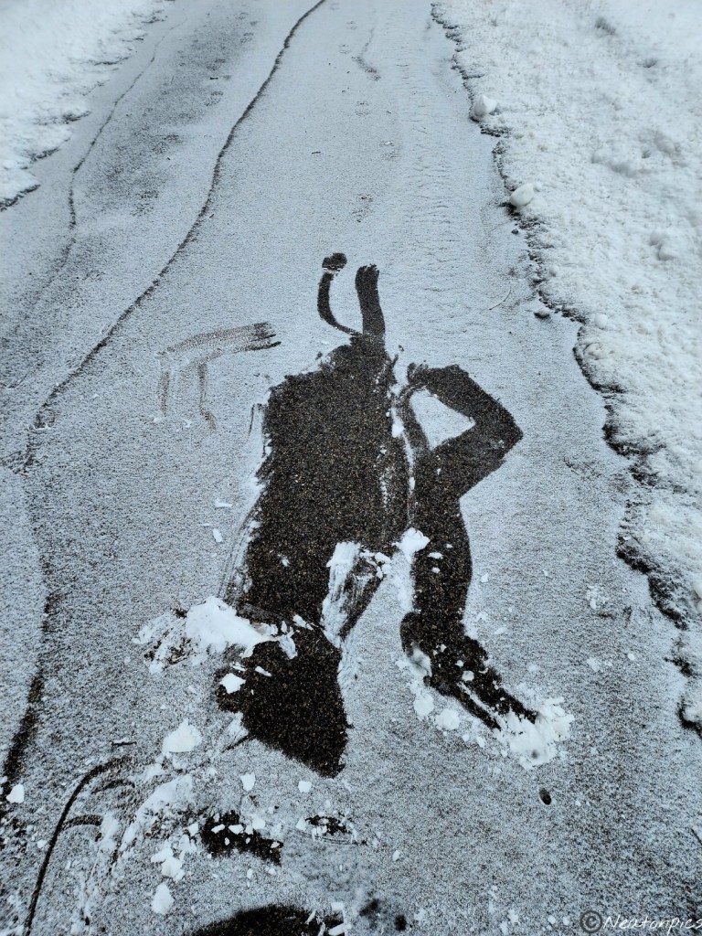 Now, once again, I see something out of the corner of my eye laying down in the snow. It must be another sculpture, right? Nope! There were at least 6 deer laying down in the snow. My photos of the deer are not the best, however, it was a cool experience to see them.