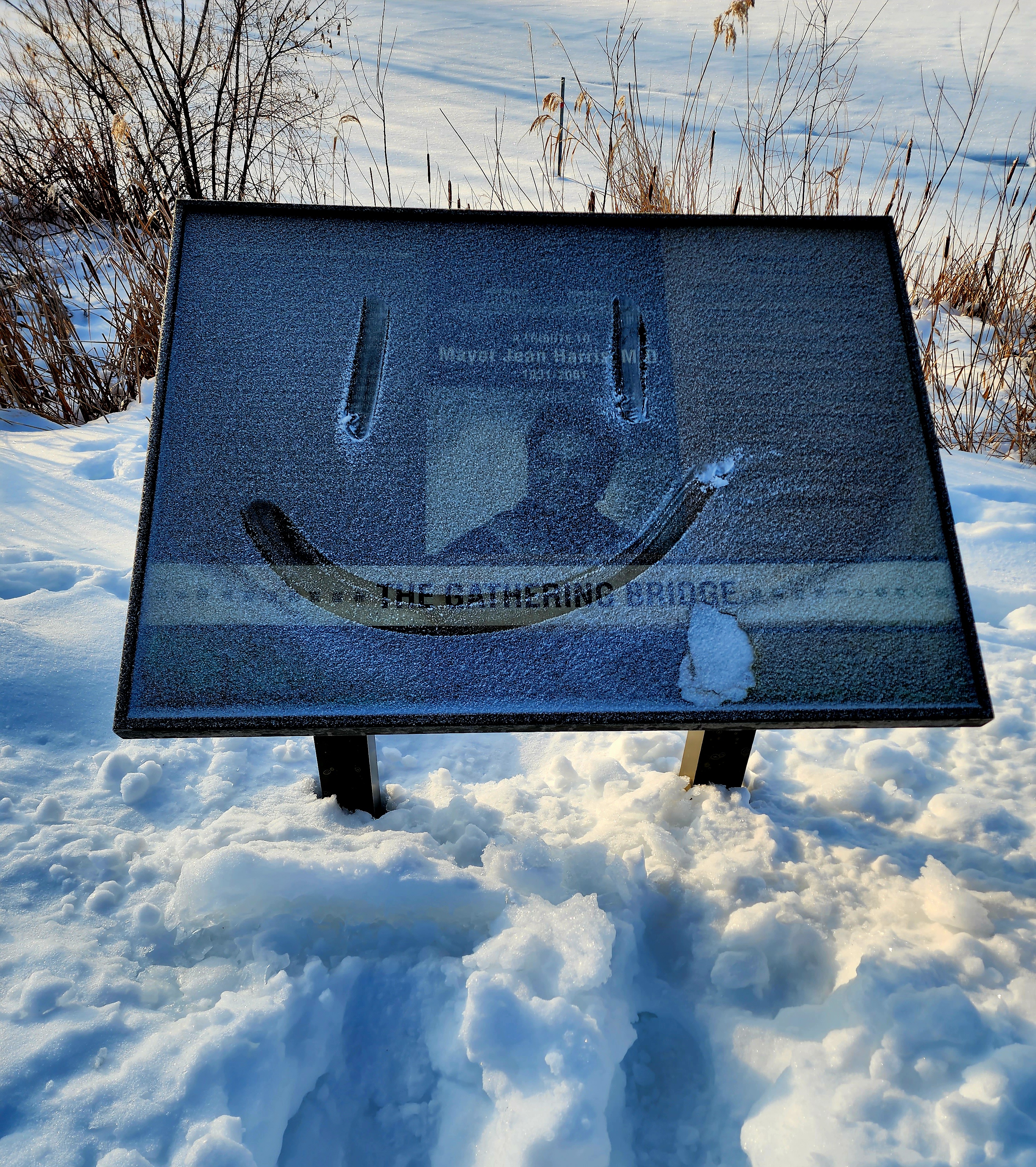 As we rounded the corner, a tiny dog appeared out of the corner of my eye. As I was getting ready to run towards it, I thought for sure it was frozen solid. Thankfully, it was a metal dog. Jokes, people got jokes!